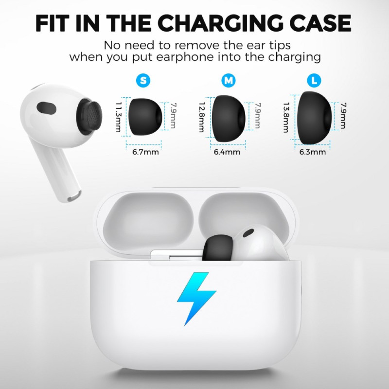 Tutustu äärimmäiseen mukavuuteen näillä AirPods Pro 3 -kuulokkeille tarkoitetuilla ensiluokkaisilla silikonikärjillä (2 paria). Niiden ergonominen muotoilu takaa optimaalisen äänieristyksen ja täydellisen istuvuuden.