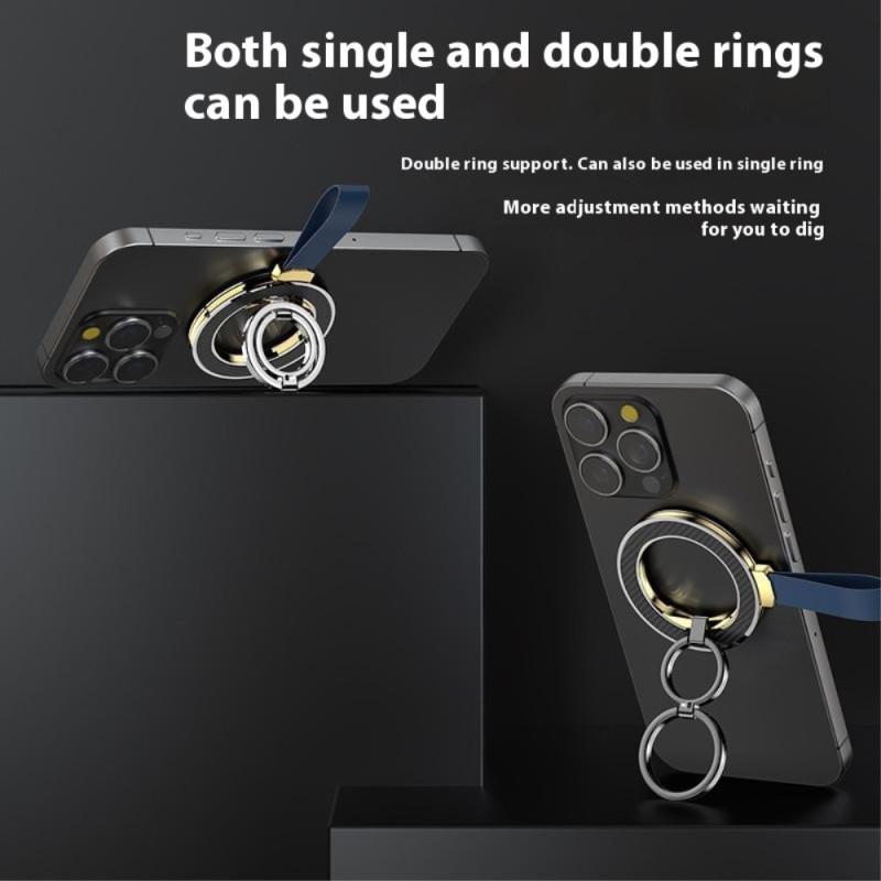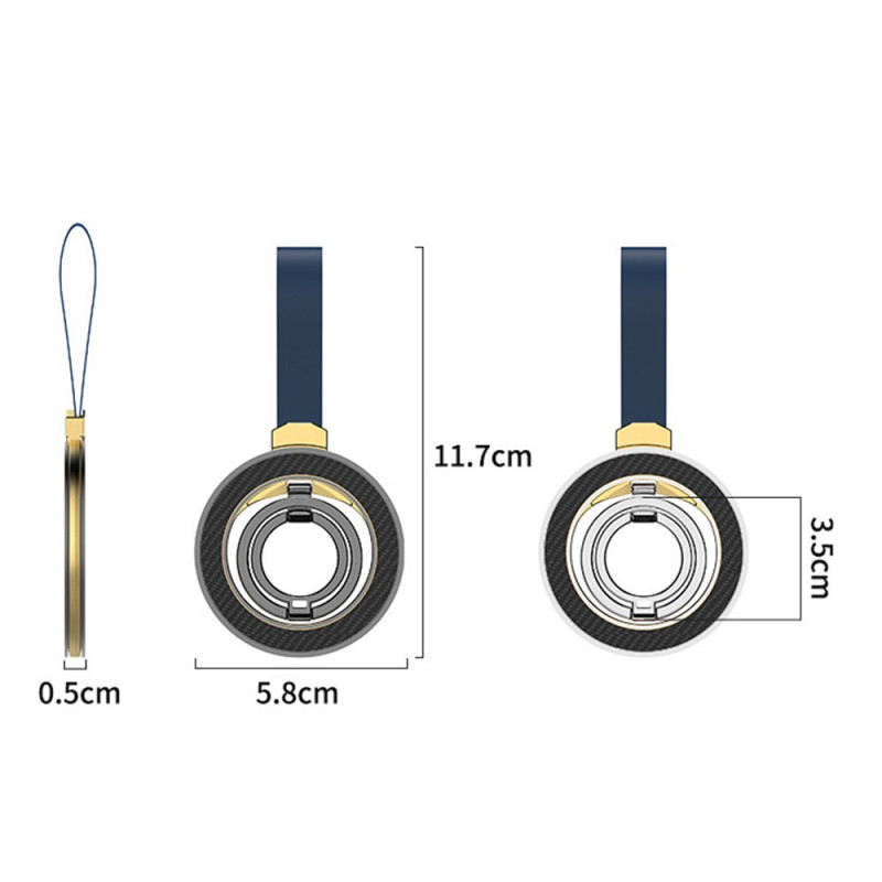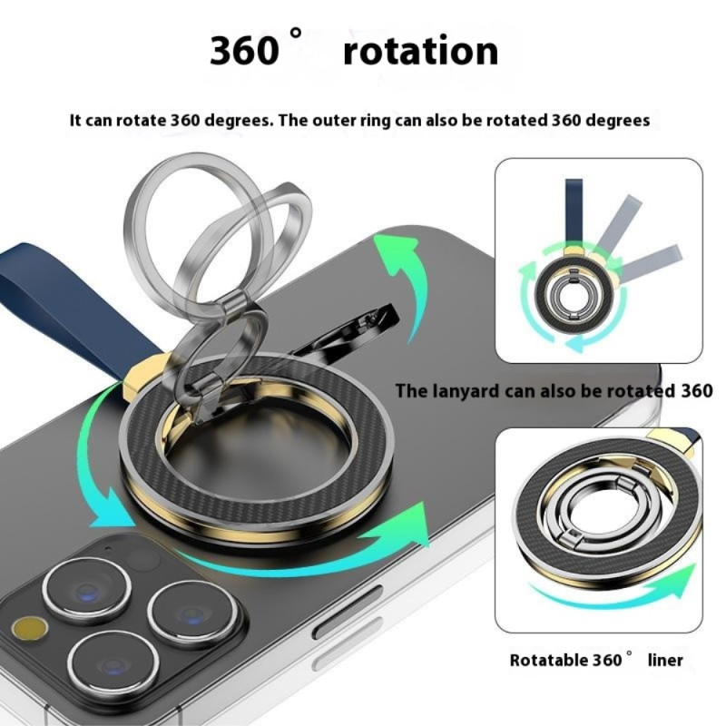 Tässä pyörivässä magneettipidikkeessä, jossa on rengas, yhdistyvät tyylikkyys, mukavuus ja suorituskyky, jotta älypuhelimesi olisi mukana joka päivä. Se on valmistettu sinkkiseoksesta, jossa on pehmeä silikonipinnoite, ja se tarjoaa miellyttävän ja turvallisen otteen. Sen tehokas N52-magneettijärjestelmä, joka koostuu 18 magneetista, takaa vakaan pidon, ihanteellinen handsfree-käyttöön tai jalustana. Rengas kääntyy 360° ja kallistuu jopa 110°, joten voit valita mukavimman kulman videoiden katseluun, puheluiden soittamiseen tai sisällön luomiseen. Kevyt ja kompakti, se sopii täydellisesti kaikkiin nykyaikaisiin älypuhelimiin.