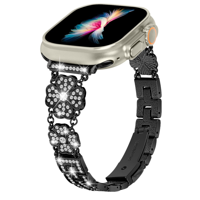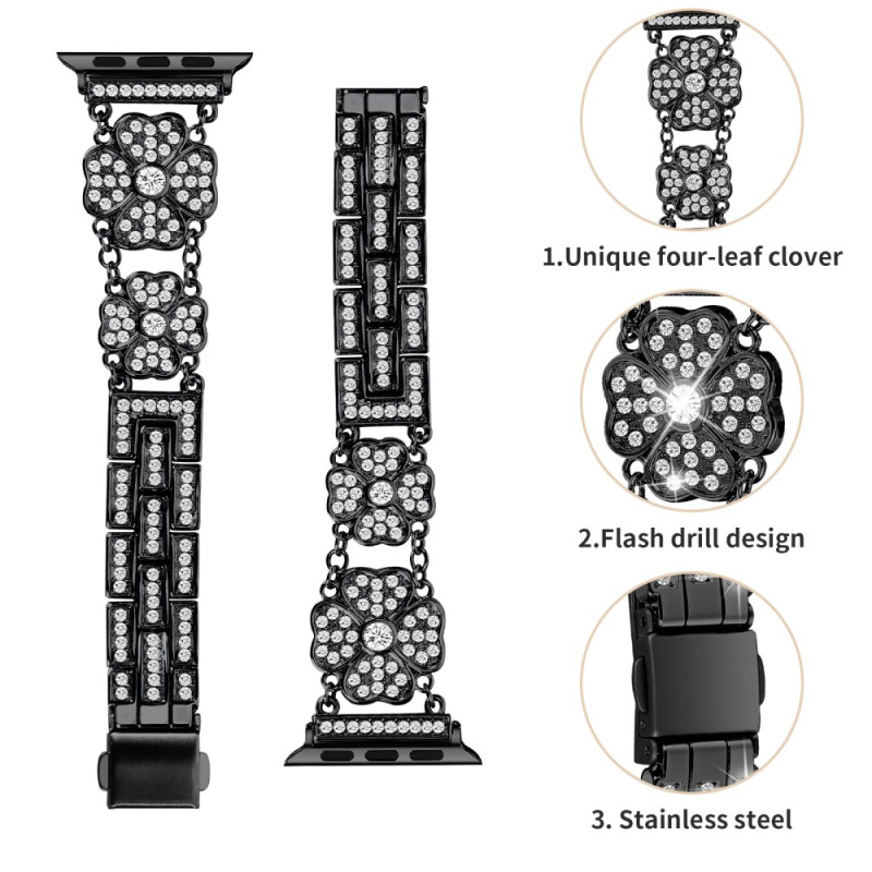 Strassikivillä ja koristeellisella apilanlehdellä koristeltu rannekoru tuo ripauksen glamouria yhdistettyyn kelloosi.