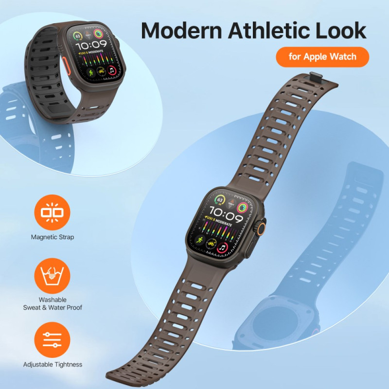 - Yhteensopiva seuraavien kanssa: Apple Watch Series 10 46mm / Apple Watch SE (2023) 44mm / Apple Watch Ultra 2 49mm / Apple Watch Series 9 45mm / Apple Watch SE (2022) 44mm / Apple Watch Series 8 45mm / Apple Watch Ultra 49mm / Apple Watch Series 7 45mm / Apple Watch Series 6 44mm / Apple Watch SE 44mm / Apple Watch Series 4 44mm / Apple Watch Series 5 44mm / Apple Watch Series 3 42mm / Apple Watch Series 2 42mm / Apple Watch Series 1 42mm.