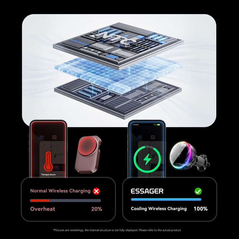 Innovatiivinen 15 W:n magneettinen langaton laturi, jossa on kehittynyt TEC-jäähdytysjärjestelmä ja nopea tuuletin. Helppo asennus tuuletusritilään, 360° kierto optimaalista sijoittelua varten. Nopea ja turvallinen lataus LED-ilmaisimella.