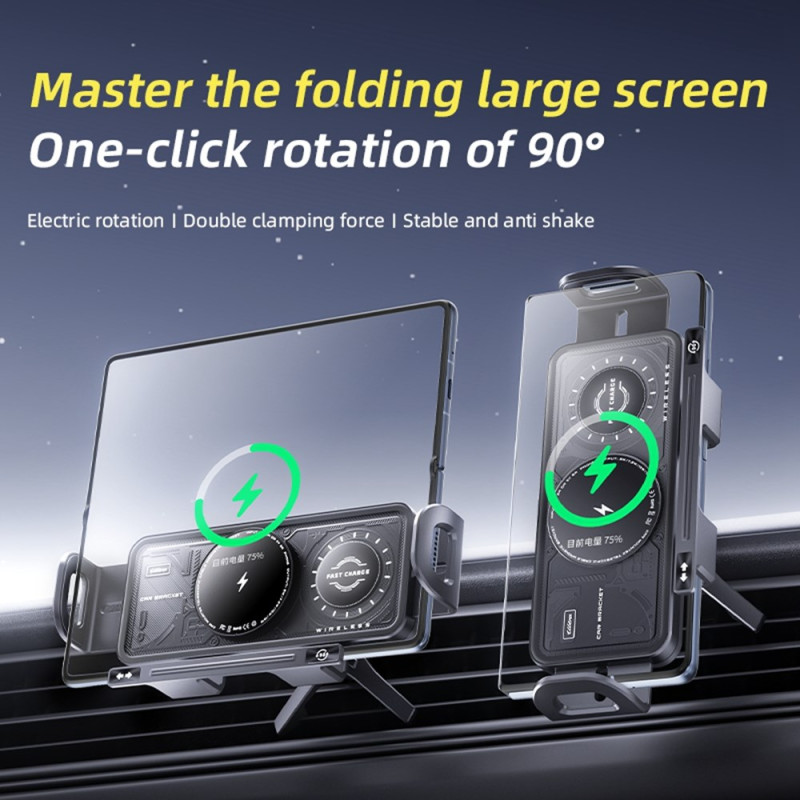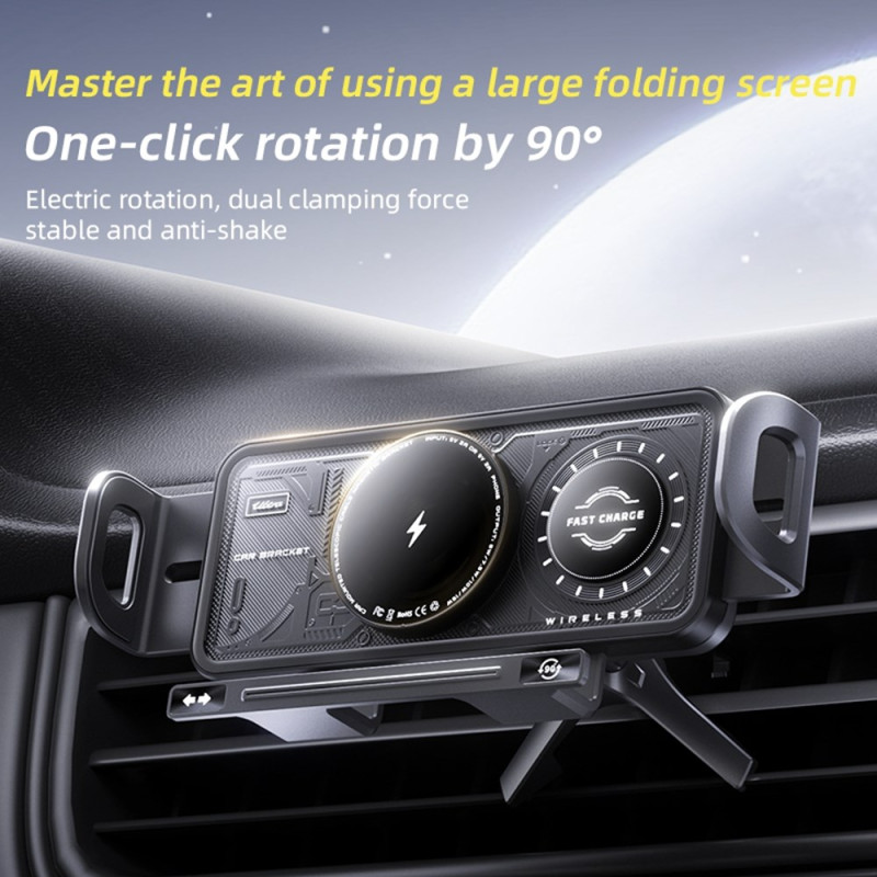 Tutustu SD04-autotelineeseen, jossa on 15 W:n langaton laturi. Se on suunniteltu taittuville ja klassisille älypuhelimille, ja siinä on 360° sähköinen kierto, automaattinen vapautustoiminto ja helppo asennus tuuletusritilään....