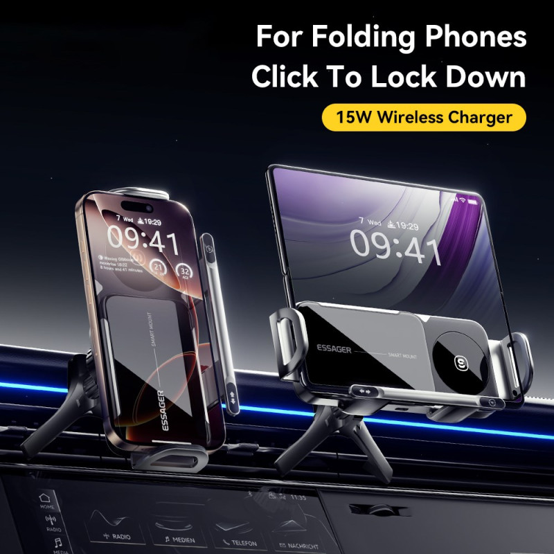 Tutustu ESSAGER-puhelintelineeseen, jossa on 15 W:n langaton laturi. Vakaa kolmiomainen muotoilu, helppo kääntäminen, sisäänrakennettu 150mAh akku 500 sykliä varten. Kotkankynsikiinnike turvalliseen kiinnitykseen tuuletusritilään.