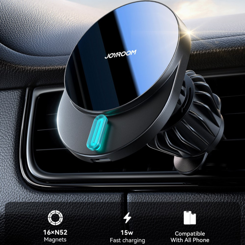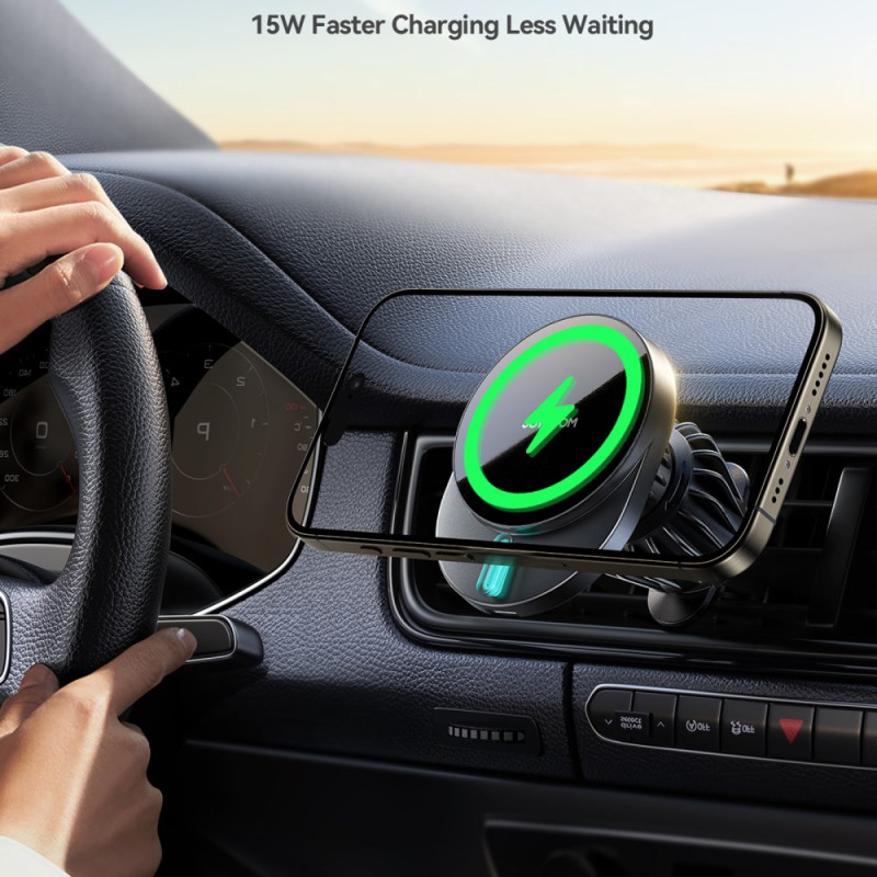 Lataa älypuhelimesi täysin turvallisesti tällä 15 W:n langattomalla magneettipidikkeellä. Kiinnittyy turvallisesti tuuletusritilään, kääntyy 360° ja kohdistuu automaattisesti nopeaan ja tehokkaaseen lataukseen. Yhden käden käyttö lisää mukavuutta.