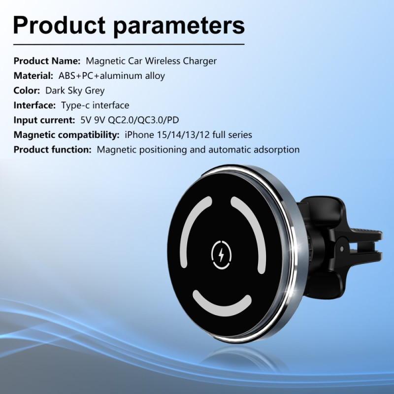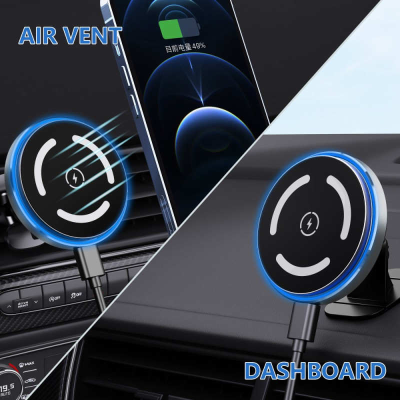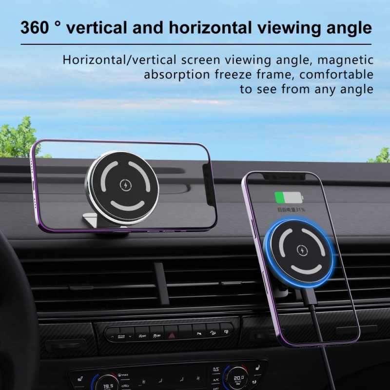 Muunna sisustuksesi tämän tyylikkään 15 W:n magneettisen langattoman laturin avulla. Erittäin ohut muotoilu, jossa on 360° kierto, ympäristön LED-valaistus ja vahvistetut magneetit erittäin vakaata kiinnitystä varten. Yhteensopiva kaikkien langattomasti ladattavien älypuhelinten kanssa.