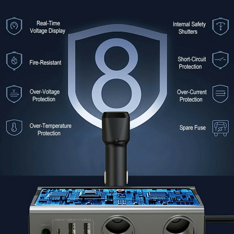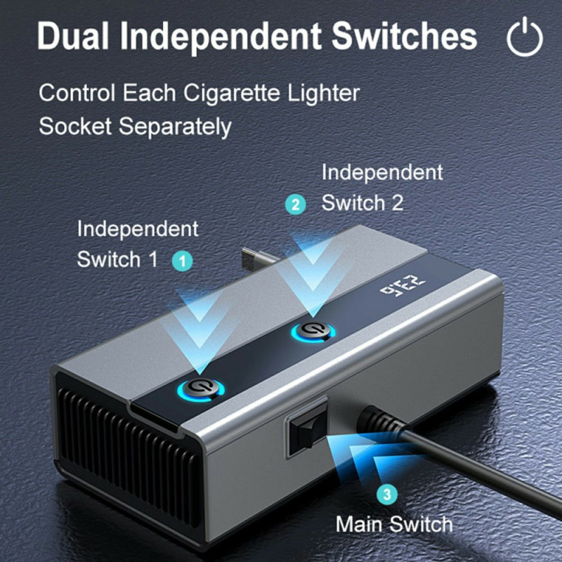 Transformez votre allume-cigare en station de charge puissante ! Cet adaptateur 120W dispose d'un câble rétractable PD 65W, de 3 ports supplémentaires (2 USB-A + 1 USB-C), d'un écran de tension en temps réel et de commutateurs indépendants pour une gestion optimale de l'énergie.