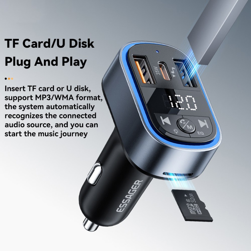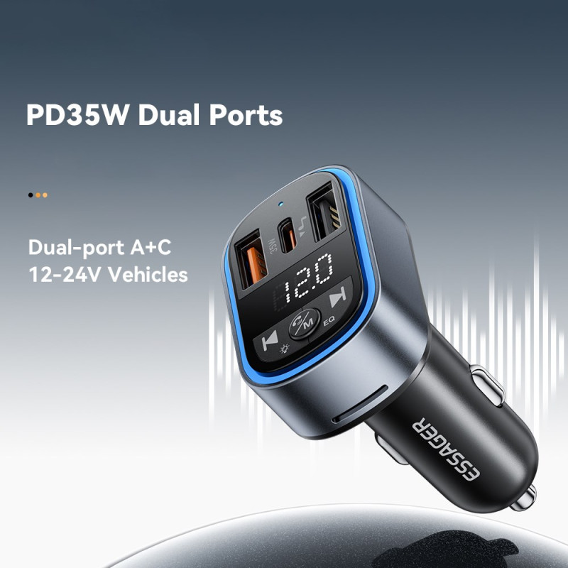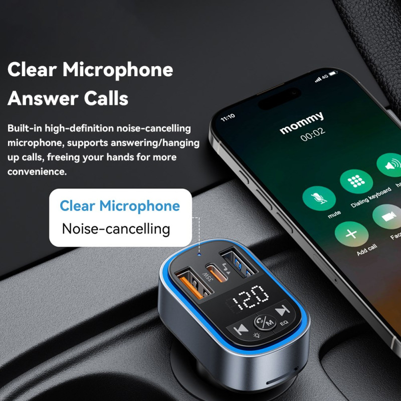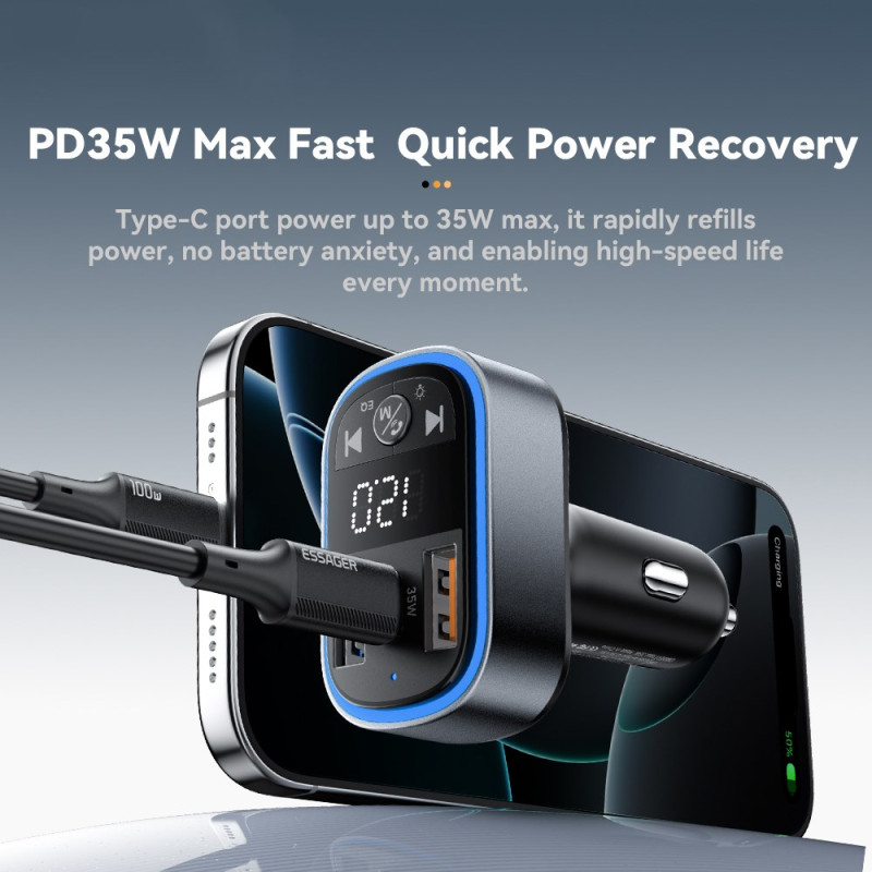 Muunna matkasi tämän kaksiporttisen 35W PD-älykkään autolaturin avulla. Nauti ultranopeasta samanaikaisesta latauksesta, sisäänrakennetusta FM-lähettimestä ja Bluetooth 5.3 -tekniikasta virheetöntä langatonta äänen suoratoistoa varten.