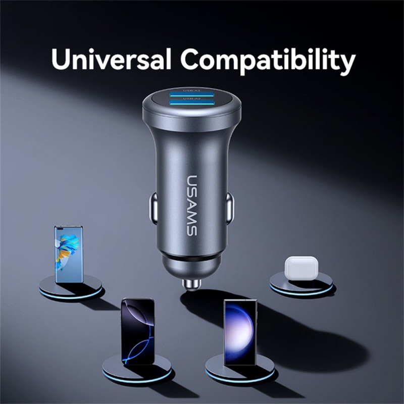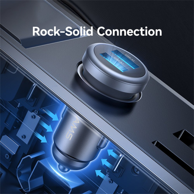 Lataa laitteesi nopeasti liikkeellä ollessasi tällä kompaktilla USAMS-autolaturilla. Se on varustettu kahdella 2,4 A:n USB-portilla, joten sillä voi ladata useita laitteita samanaikaisesti.