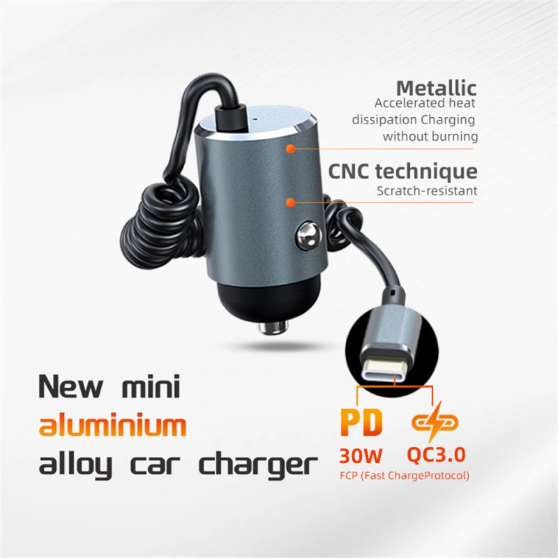 Lataa laitteesi salamannopeasti PD 30W autolaturilla! Tämä erittäin kompakti laturi on yhteensopiva kaikkien älypuhelinten ja tablettien kanssa ja sopii mihin tahansa ajoneuvoon. Sen pikalataustekniikka lyhentää odotusaikaa huomattavasti, ja sen vankka rakenne takaa pitkäaikaisen suorituskyvyn.