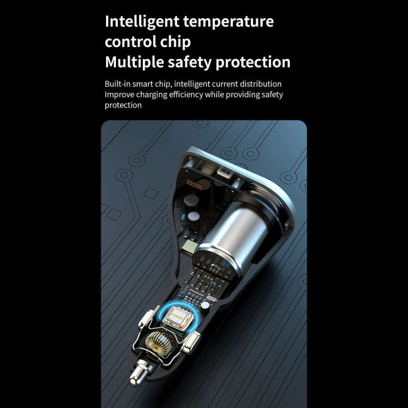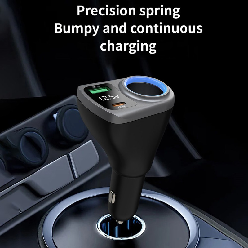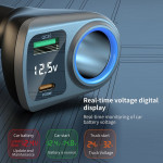Älykäs 3-in-1-savukkeensytytinlaturi, jossa on reaaliaikainen digitaalinen jännitteen näyttö. Tarjoaa nopean PD 30W latauksen C-tyypin portin, USB QC 3.0 18W portin ja tupakansytytinliitännän kautta useiden laitteiden lataamiseen samanaikaisesti.