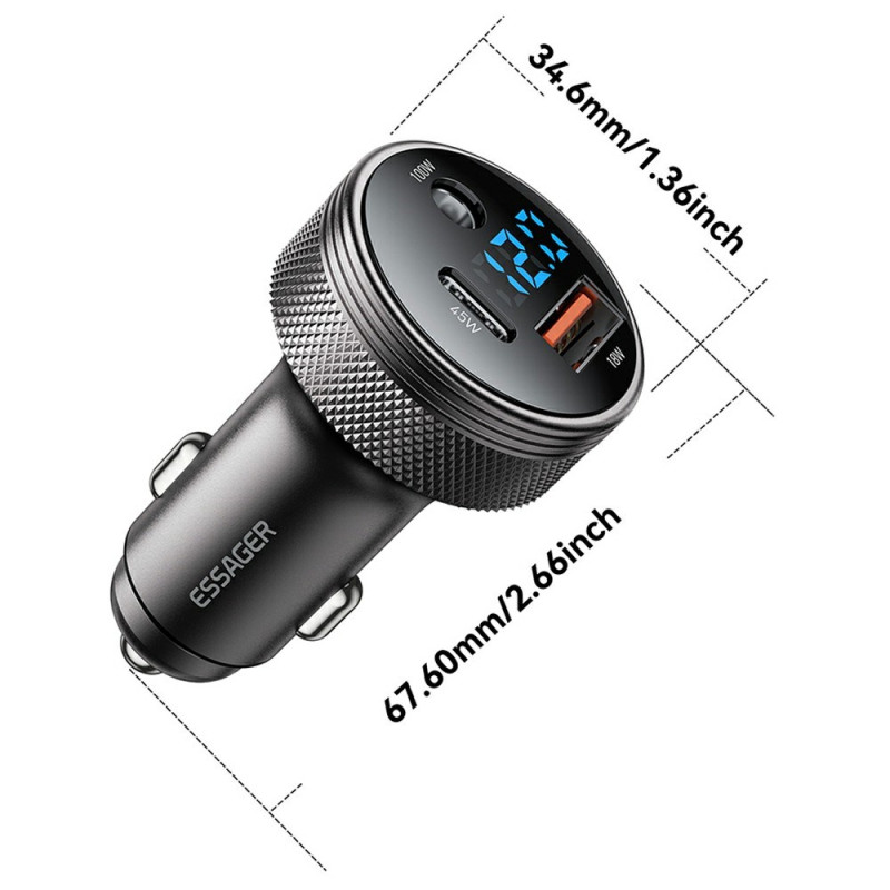 Tehokas 150 W:n autolaturi, jossa on digitaalinen näyttö reaaliaikaista seurantaa varten. Varustettu 3 portilla (USB-A, Type-C, DC), jotta voit ladata kaikki laitteesi samanaikaisesti. Älykäs pikalataustekniikka ja 6 suojaustasoa...