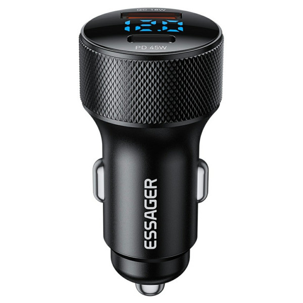 ESSAGERin nopea autolaturi, jossa on kaksi USB-A- ja Type-C-porttia, jotka tarjoavat jopa 45 W tehon. PD3.0- ja QC3.0-yhteensopiva laitteiden ultranopeaan lataamiseen. Reaaliaikainen LED-tehonäyttö ja älykäs siru optimaalista suojausta varten.