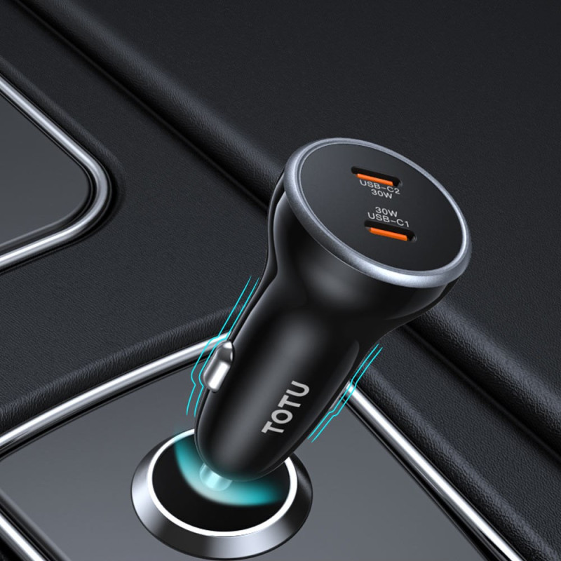 Ota matkoistasi kaikki irti TOTU CC-6 -autolaturin avulla. Kahden USB-C-portin avulla, jotka tuottavat jopa 60 W:n tehon, se voi ladata nopeasti kaksi laitetta samanaikaisesti. Sen kompakti muotoilu sopii siististi ajoneuvoosi.