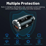 Erittäin nopea 30 W:n autolaturi, jossa on kaksi USB-porttia ja Type-C PD. Hyödynnä QC3.0-tekniikkaa laitteiden pikalataukseen. Kompakti muotoilu, jossa on kätevä irrotusrengas ja älykäs siru.