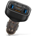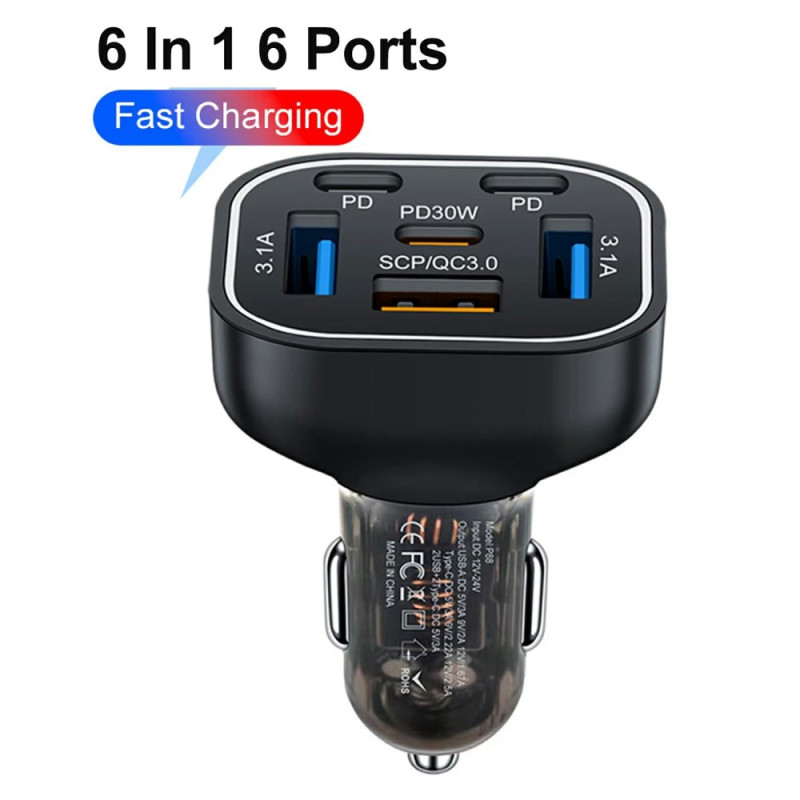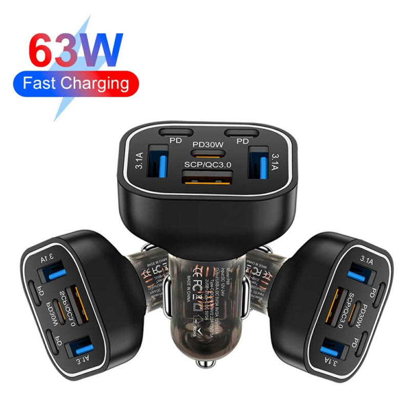 Lataa jopa 6 laitetta samanaikaisesti tällä kompaktilla 63 W:n autolaturilla. Se tarjoaa 3 USB- ja 3 PD Type-C -porttia, joten se tarjoaa nopean ja tehokkaan latauksen ja suojaa samalla laitteitasi. Sen tyylikäs muotoilu 7-värisellä LED-valolla lisää ainutlaatuisen kosketuksen.
