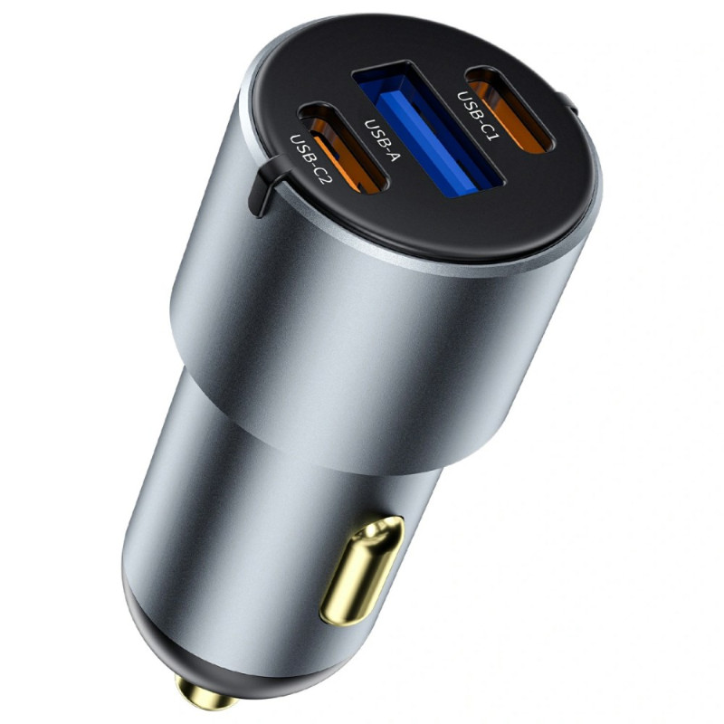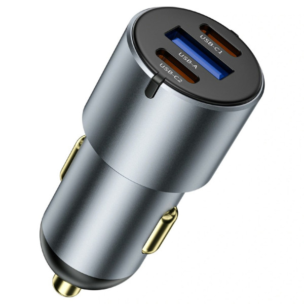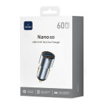 WIWU Nano Pro -suorituskykyinen autolaturi, jossa on kaksi USB-C- ja USB-A-porttia, jotka tarjoavat nopean latauksen jopa 60W. Älykäs virranjako jopa 30W per portti useiden laitteiden samanaikaiseen lataamiseen...