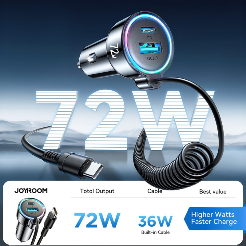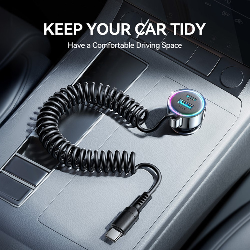 Lataa jopa kolme laitetta samanaikaisesti erittäin nopealla 72 W:n autolaturillamme. Jousikaapelilla, jonka voi pidentää jopa 1,6 metriin, ja 7-värisellä ympäristön valaistuksella se tarjoaa turvallisen ja kätevän latauksen kaikille laitteillesi.