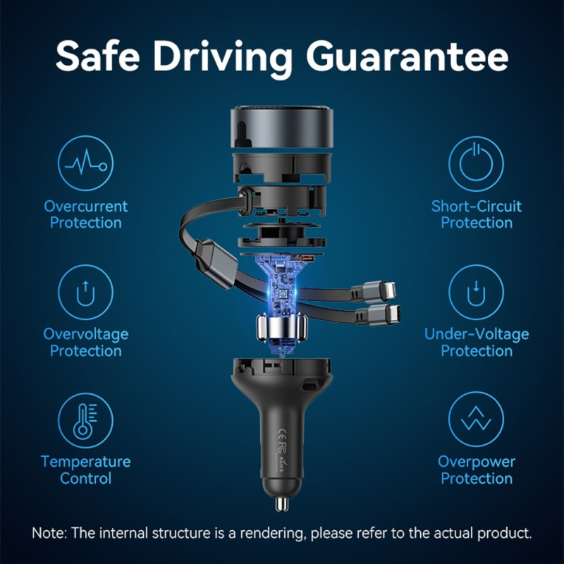 Lataa laitteesi hetkessä tällä innovatiivisella autolaturilla, jossa on 30 W Power Delivery -tekniikka. Kahden integroidun Type-C- ja iP-kaapelin ansiosta ylimääräisiä kaapeleita ei tarvitse kantaa mukana. Hyödynnä 60 W:n kokonaistehoa ja anna virtaa useille laitteille samanaikaisesti.