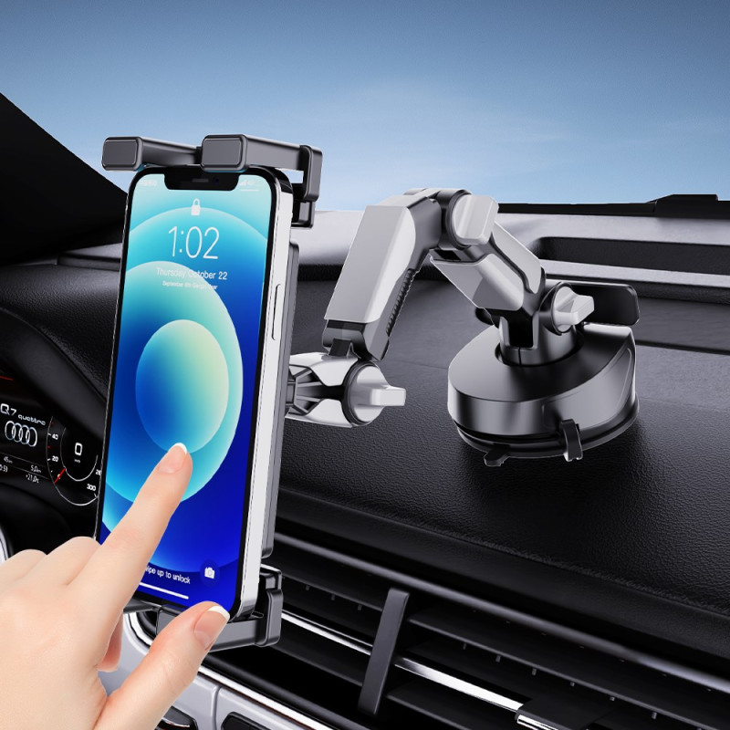 X257 yleisteline, jossa on tehokas imutuki ja nivelvarsi puhelimille ja tableteille. 360°:n kierto mahdollistaa optimaalisen käytön pysty- tai vaakatasossa. Yhteensopiva 145-225 mm:n laitteiden kanssa. Ihanteellinen GPS-navigointiin, handsfree-puheluihin ja turvalliseen viihteeseen liikkeellä.