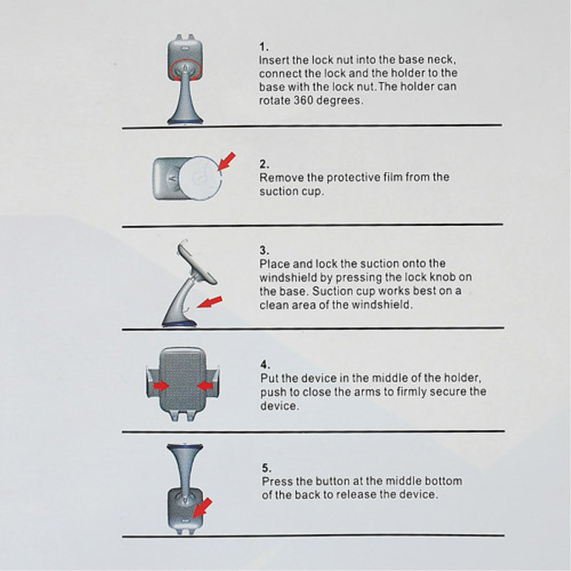 Nauti turvallisesta ajamisesta tämän universaalin imukuppikiinnikkeen avulla. 360° kierto, erittäin vakaa kiinnitys ja joustava säätö kaikille laitteillesi 60-90 mm. Yhteensopiva iPhonen, Samsungin, HTC:n, Nokian ja GPS:n kanssa.
