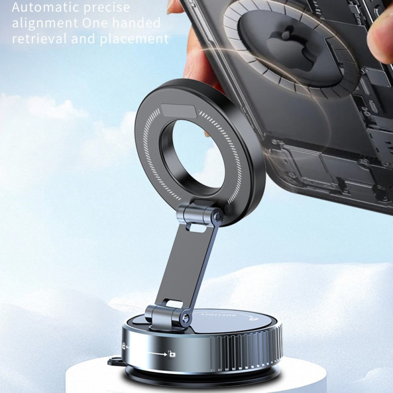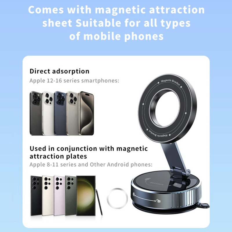 Universaali magneettinen autokiinnike, jossa on erittäin tarttuva imukuppi ja 360° kierto. Nauti optimaalisesta navigoinnista sen säädettävän varren ja voimakkaan 20N magneettisen vetovoiman ansiosta. Helppo asennus ilman työkaluja, yhteensopiva kaikkien magneettisella langattomalla latauksella varustettujen älypuhelinten kanssa.
