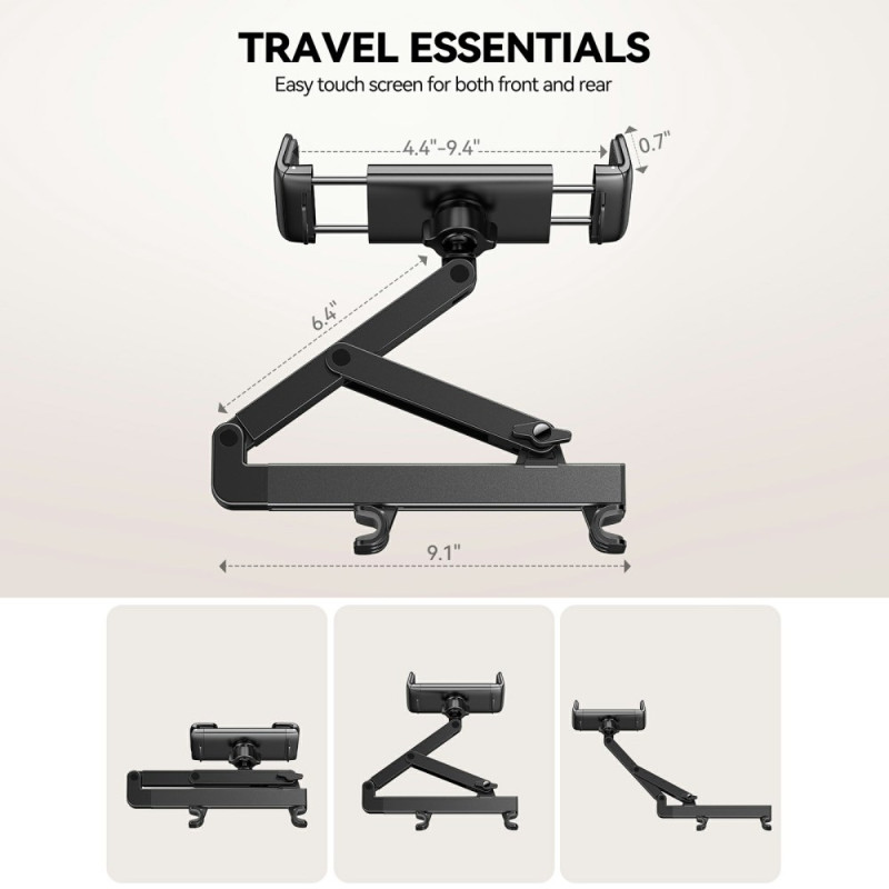 Innovatiivinen hyllytuki niskatukea varten, jossa on ulosvedettävä kaksiakselinen rakenne, joka takaa poikkeuksellisen vakauden. Säädettävä, kokoontaitettava rakenne, jossa on turvallinen lukitusjärjestelmä. Nopea asennus kaksoisjousirakenteen ansiosta. Monikulmasäätö optimaalista katselumukavuutta varten. Yhteensopiva 4,7-13 tuuman laitteiden ja 70-158 mm:n pääntukivälien kanssa.