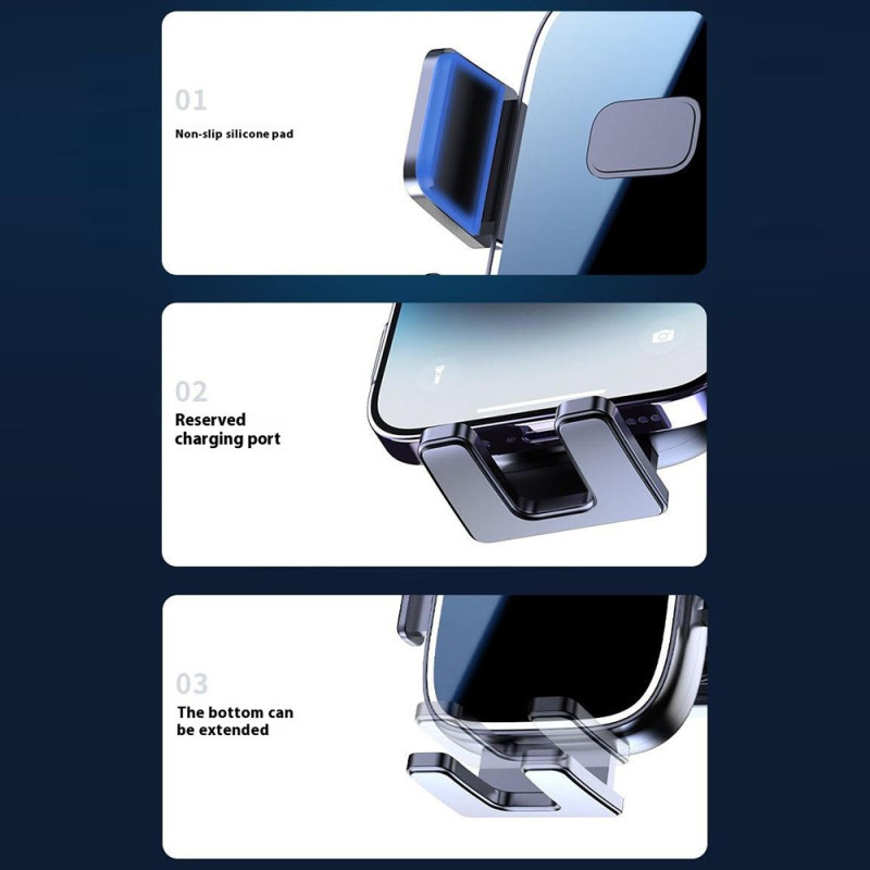 Yleispidike, jossa on 360° kierto turvallista handsfree-ajoa varten. Älykäs painovoimainen muotoilu pitää älypuhelimen tukevasti kiinni tuuletusaukosta. Yhteensopiva kaikkien 4,5-7 tuuman puhelimien kanssa. Helppo pääsy latausporttiin.