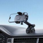 Turvaa älypuhelimesi yhdellä napsautuksella pikalukitusjärjestelmän ansiosta. Tämä pidike on yhteensopiva kaikkien 4,7-6,9 tuuman puhelinten kanssa, ja siinä on vankka imukuppikiinnitys kojelautaan tai tuulilasiin.