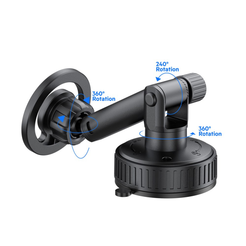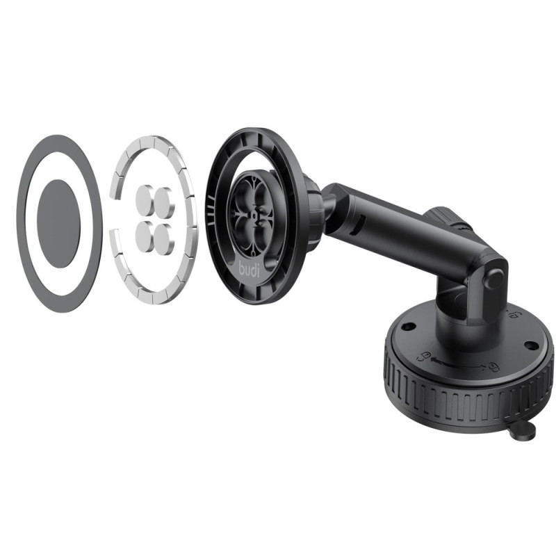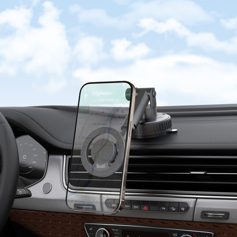 Katselukulman täydellinen hallinta ja laitteen turvallisuus ovat olennaisia tekijöitä häiriöttömän ajamisen kannalta. Tämä BUDI-pidike käyttää voimakasta magneettia pitämään puhelimen tukevasti paikallaan myös äkkinäisten liikkeiden aikana. Laitteessa on kaksoiskierto (360° liittimessä ja 240° varressa), mikä mahdollistaa täydellisen säädön navigointi- tai videopuhelutarpeiden mukaan. Imukuppipohja takaa monipuolisen ja luotettavan kiinnityksen erilaisiin pintoihin. Puhelimen asentaminen ja irrottaminen on nopeaa ja helppoa magneettikiinnityksen ansiosta.