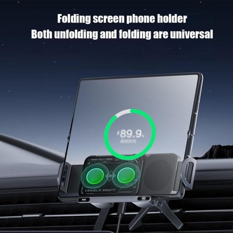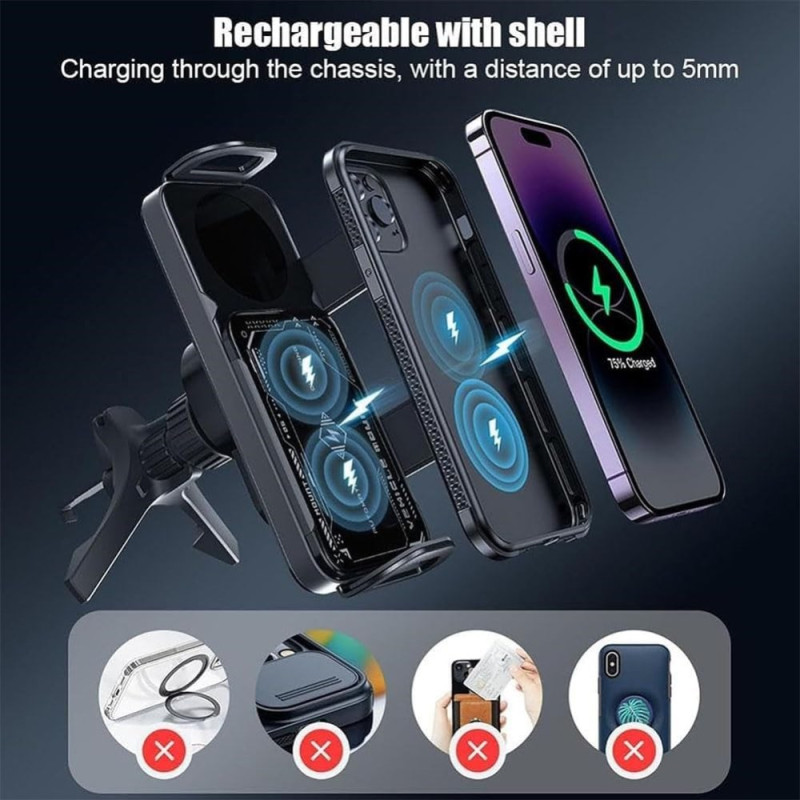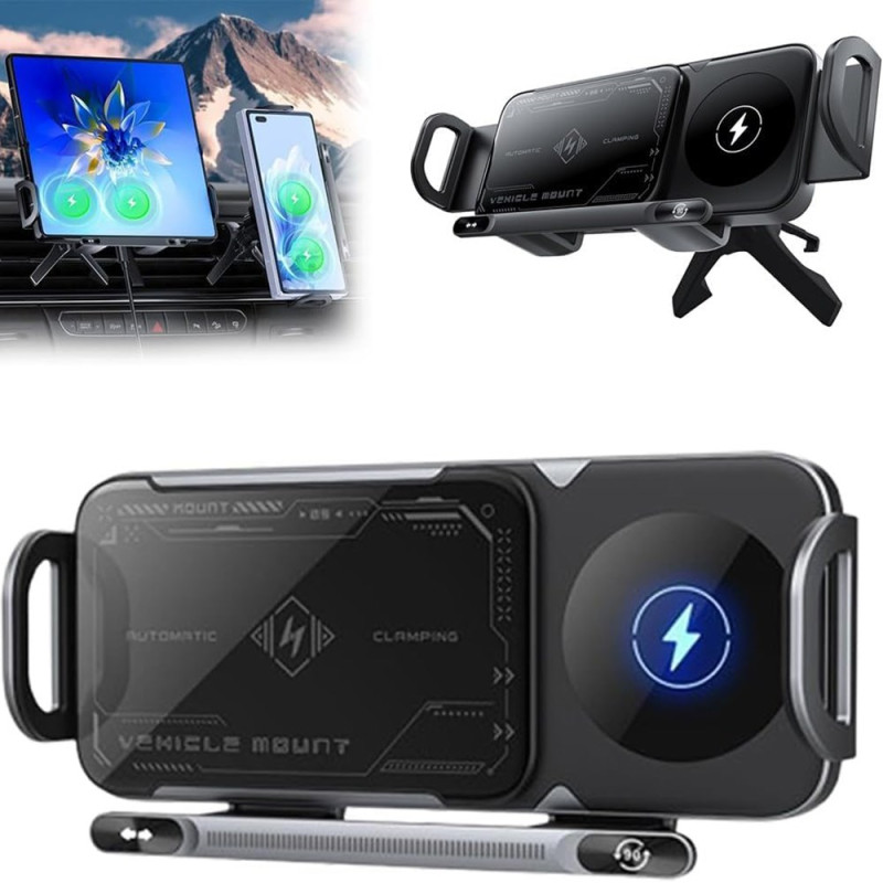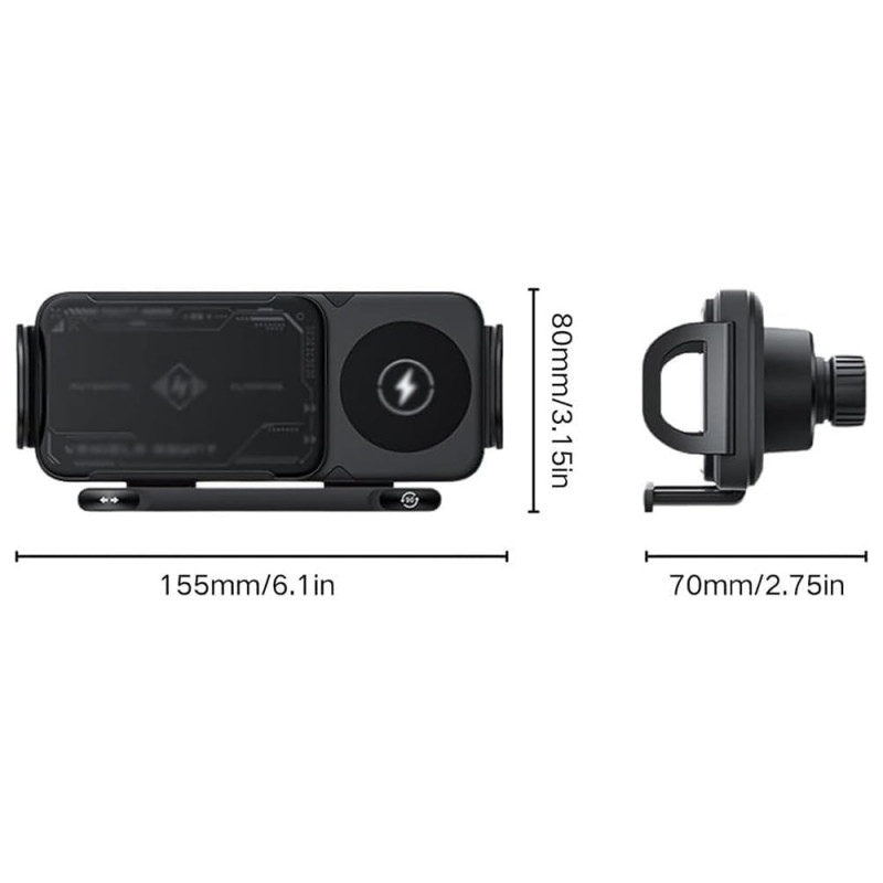 Tässä 15 W:n langattomalla laturilla varustetussa autopuhelimen pidikkeessä yhdistyvät mukavuus, teho ja turvallisuus päivittäisiä matkojasi varten. Sen pikalataustoiminnon ansiosta puhelimesi on täysin itsenäinen ilman tilaa vievää kaapelia. Sen itsekääntyvän järjestelmän ansiosta puhelin on helppo säätää pysty- tai vaakatasoon optimaalista navigointia varten. Tuuletusritilän kiinnitys takaa täydellisen vakauden myös epätasaisilla teillä. Se on suunniteltu monenlaisille puhelimille ja tableteille, ja se tarjoaa tukevan otteen ja handsfree-kokemuksen, joka on ihanteellinen ajamiseen täydessä mielenrauhassa.