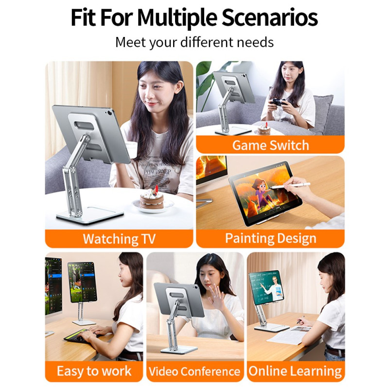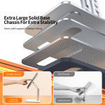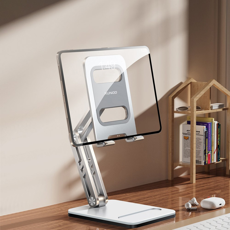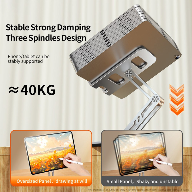 Säädettävä XUNDD-pöytäteline tarjoaa poikkeuksellisen vakautta alumiiniseoksen, hiiliteräksen ja liukumattoman silikonialustan ansiosta. Sen raskas kolmiakselinen järjestelmä tarjoaa tasaisen ja tarkan säädön ja tukee jopa 40 kg:n painoa, joten se on ihanteellinen raskaille näytöille ja laitteille. Erittäin leveä jalusta takaa täydellisen pidon ilman kaatumisriskiä. Se on suunniteltu optimoimaan ilmanvaihto, mikä edistää lämmön haihtumista pitkäaikaisen käytön aikana. Kokoontaitettava ja kannettava, sitä voidaan käyttää kaikkiin tarkoituksiin: pelaamiseen, työskentelyyn, videoihin, piirtämiseen, oppimiseen ja muuhun.