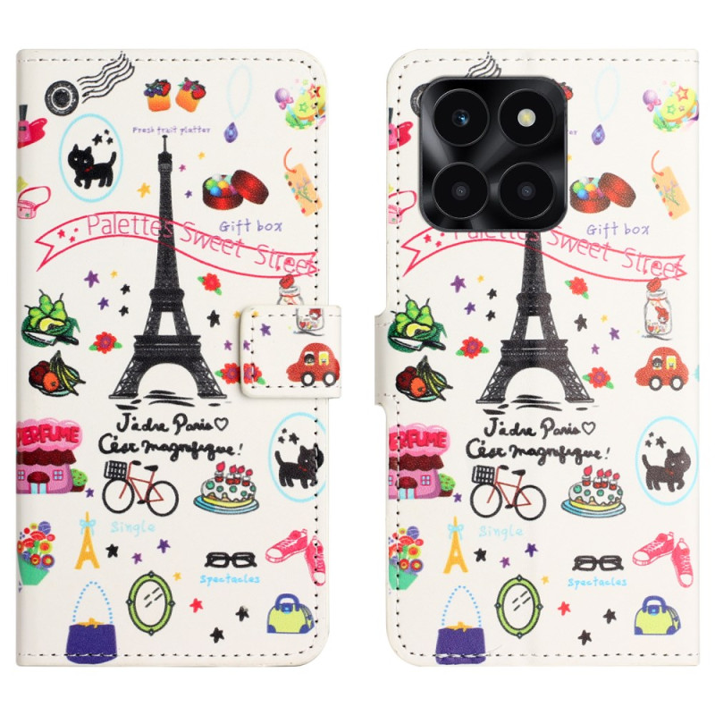Tutustu pariisilaiseen eleganssiin tällä lompakkokotelolla, jossa on Eiffel-tornin kuvio. Se yhdistää tyylin ja toiminnallisuuden ja suojaa Honor X6c 4G / X6b 4G / X6a 4G -puhelintasi sekä tarjoaa korttipaikat, turvallisen magneettisuljennan ja integroidun jalustan, jonka avulla voit katsella sisältöäsi täysin vapaasti.