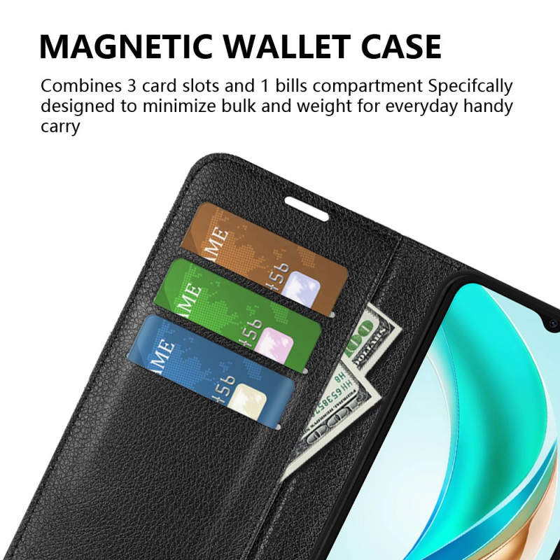 Suojaa Honor X6b 4G -puhelimesi tyylikkäästi tällä monikäyttöisellä lompakkokotelolla. Kaksikerroksinen muotoilu suojaa optimaalisesti kolhuilta ja naarmuilta. Sisältää kortti- ja käteislokerot, säädettävän jalustan ja turvallisen magneettisulkimen.
