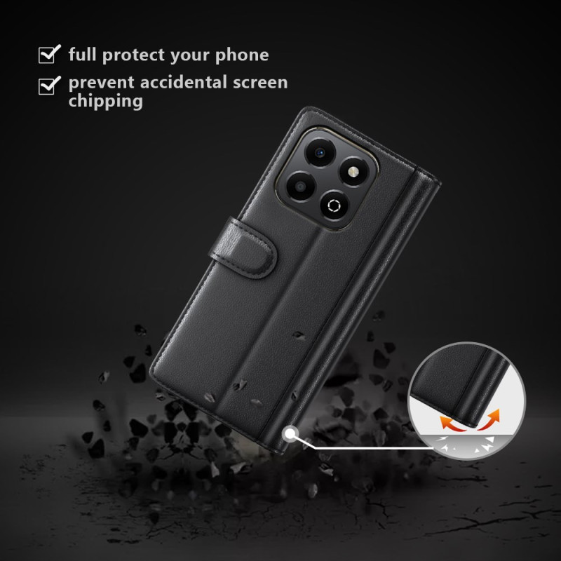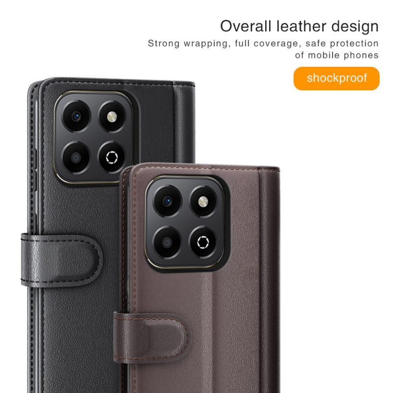 Suojaa Honor X6b 4G -puhelimesi tyylikkäästi tällä aidosta halkaisunahasta valmistetulla lompakkokotelolla. Tässä kotelossa on 3 korttipaikkaa, lipputasku ja taittuva jalusta handsfree-katselua varten, ja siinä yhdistyvät tyylikkyys ja käytännöllisyys jokapäiväiseen käyttöön.
