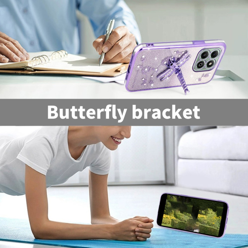 Suojaa Honor X6b 4G -puhelimesi tyylikkäästi tällä kimaltelevalla suojakuorella , jota koristavat ikuiset kukat ja strassit. Sen integroitu sudenkorento-tuki mahdollistaa handsfree-katselun, ja sen korotetut reunukset suojaavat kameraa tehokkaasti.