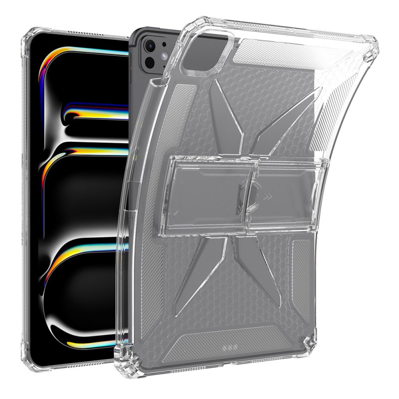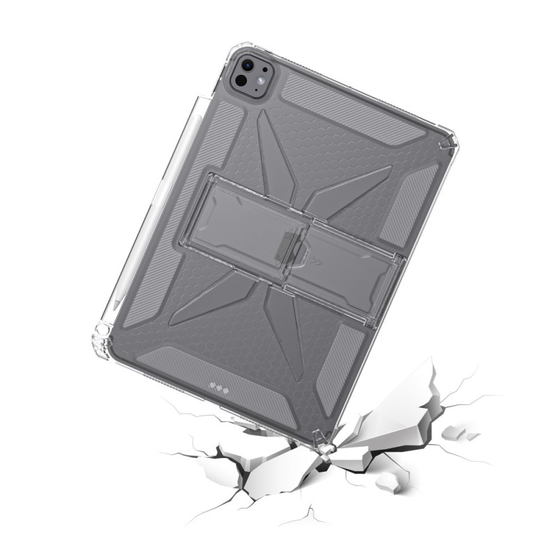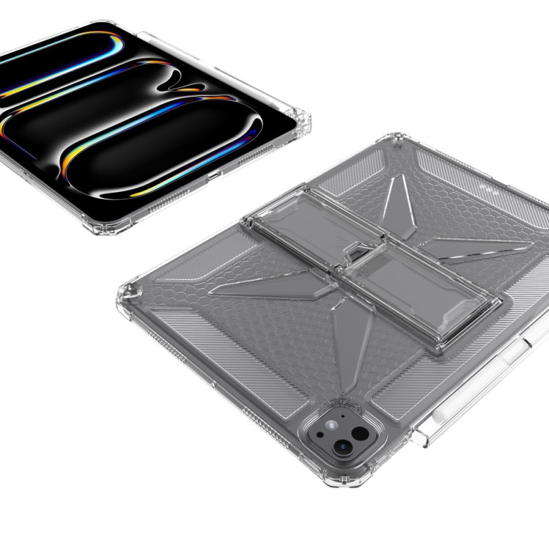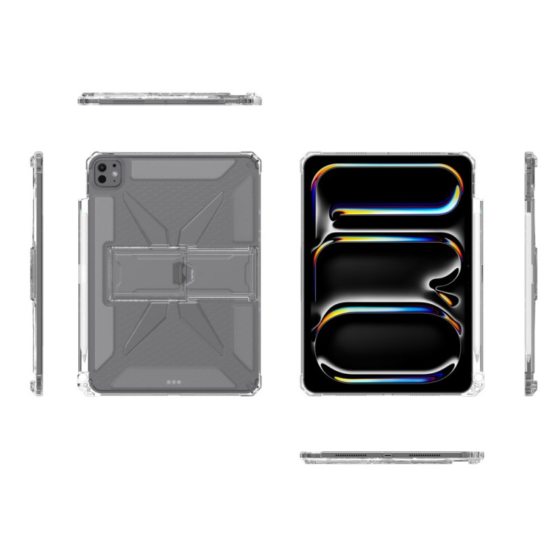 Tutustu innovatiiviseen suojakoteloon iPad Pro 11 (2025) / 11 (2024). Läpinäkyvän muotoilun, monikulmatuen ja iskusuojan ansiosta siinä yhdistyvät toiminnallisuus ja tyyli. Nauti optimaalisesta suojasta tinkimättä laitteesi estetiikasta. Integroitu kynänpidike on käytännöllinen jokapäiväisessä käytössä.
