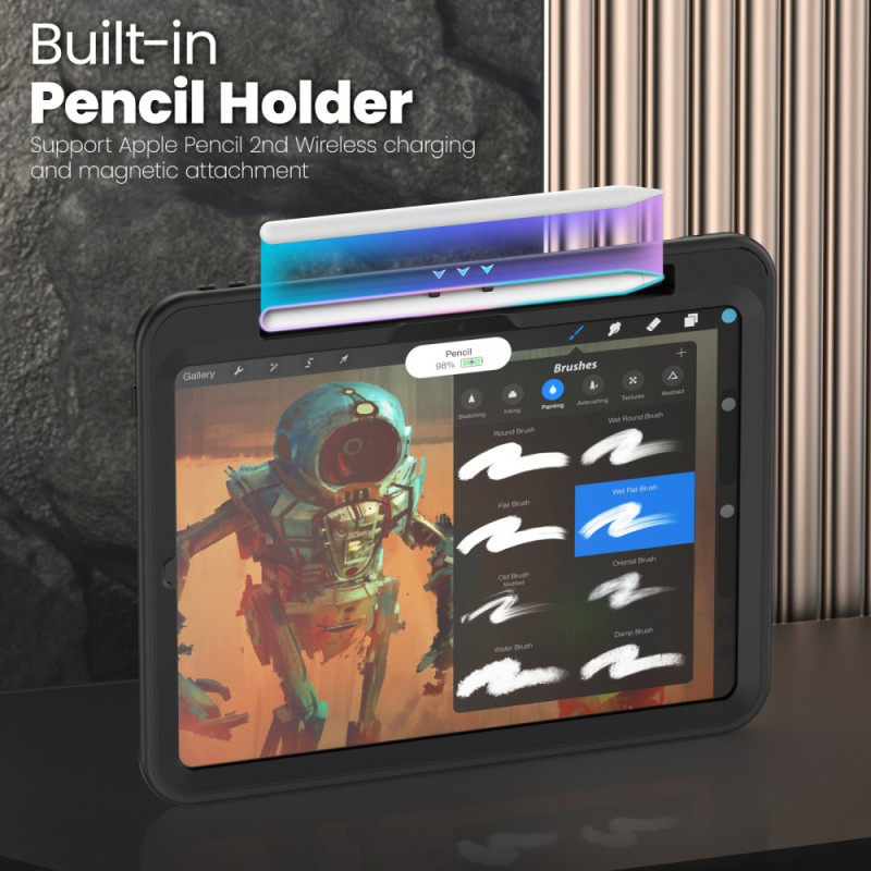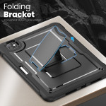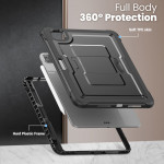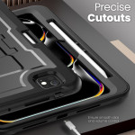Tämä iPad Pro 11 (2025) / 11 (2024) -puhelimen kestävä suojakuori tarjoaa kestävän suojan PC:n ja TPE:n sekoituksella. Kotelossa on kokoontaitettava sinkkiseoksesta valmistettu jalusta, kynän säilytyspaikka, tarkat leikkaukset, joiden ansiosta kaikki ominaisuudet ovat helposti käytettävissä, kohotettu kamerasuoja ja irrotettava olkahihna kätevää kantamista varten.