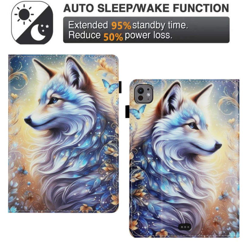 Découvrez notre étui de qualité supérieure pour iPad Pro 11 (2025) / 11 (2024). Fabriqué en cuir PU texturé et TPU, il offre une protection élégante avec son motif de loup blanc. Profitez d'un support multi-angles, d'une fonction veille/réveil automatique pour économiser la batterie, et de rangements pratiques pour vos cartes et votre stylet. Un accessoire parfait alliant style et fonctionnalité.