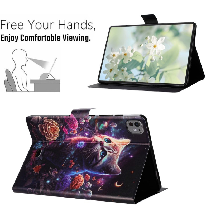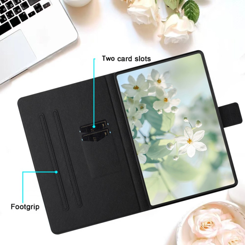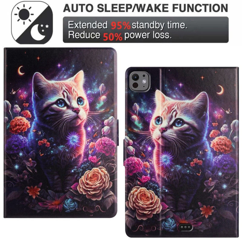 Tutustu monipuoliseen tablettikoteloon iPad Pro 11 (2025) / 11 (2024) -tabletille. Tyylikkään painetun muotoilun, lychee-kuosisen PU-nahan ja kestävän TPU-pohjan ansiosta se tarjoaa tyyliä ja suojaa. Nauti käytännöllisistä ominaisuuksista, kuten korttipaikoista, monikulmatuesta ja automaattisesta herätys-/lepotoiminnosta.