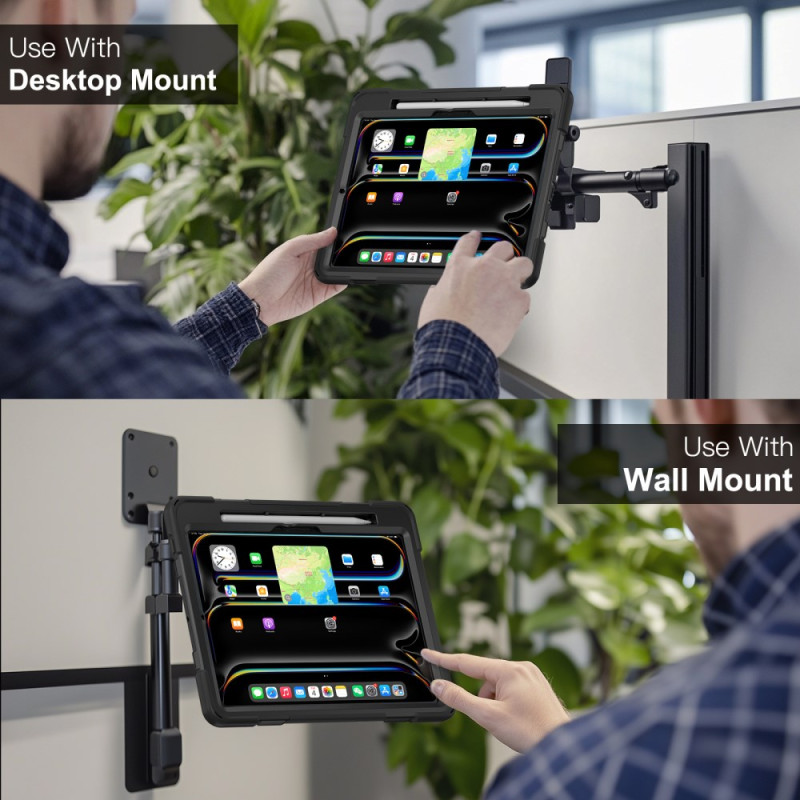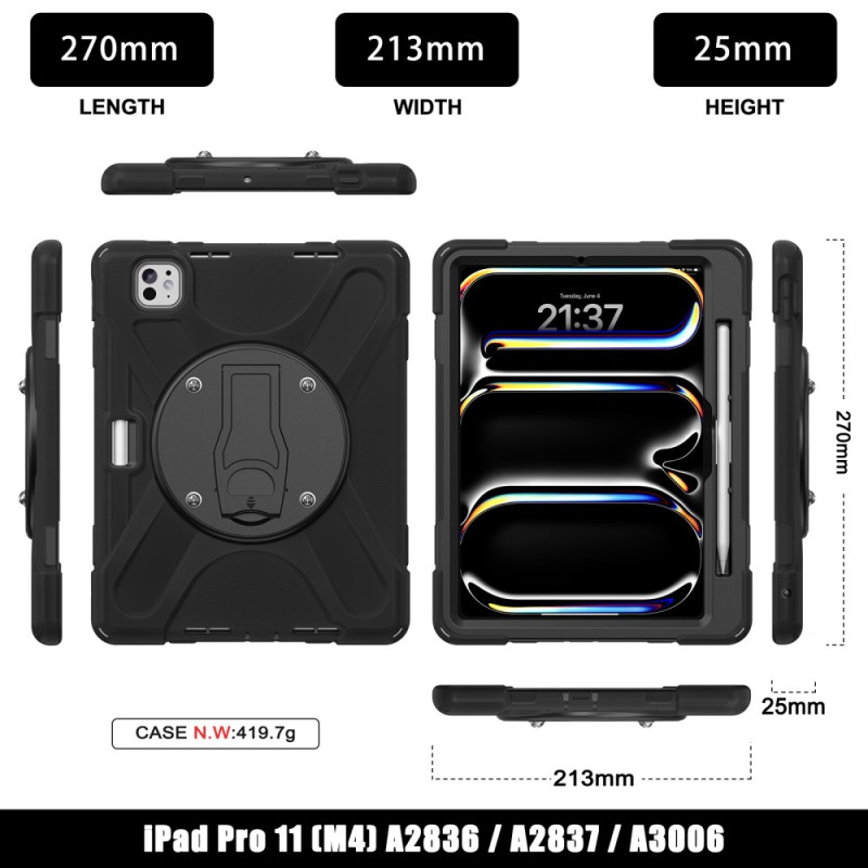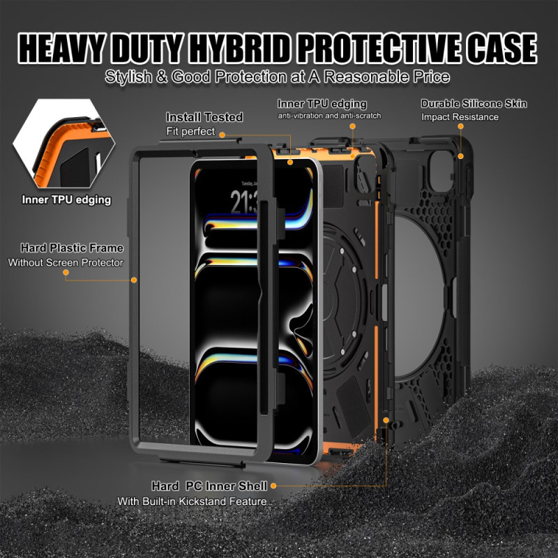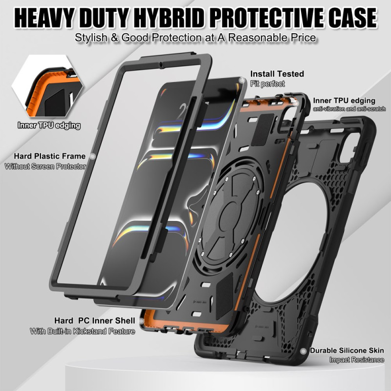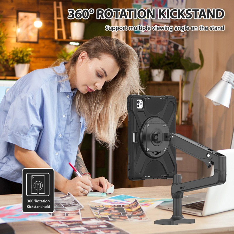 Découvrez notre étui robuste pour iPad Pro 11 (2025) / 11 (2024) avec support rotatif à 360°. Offrant une protection complète contre les chocs et les rayures, il dispose d'un support intégré pour une visualisation mains libres. Compatible VESA et doté d'un emplacement pour stylet, cet étui allie fonctionnalité et durabilité pour une utilisation optimale de votre tablette.