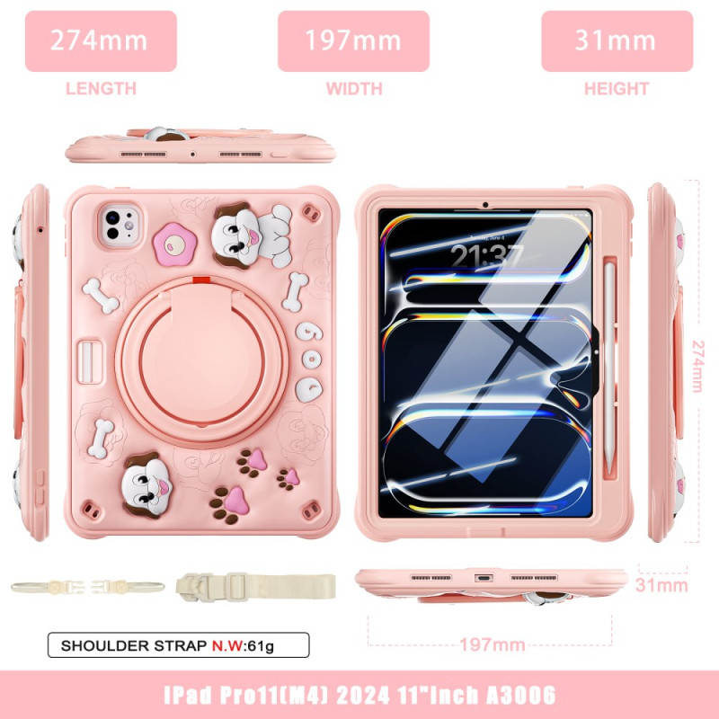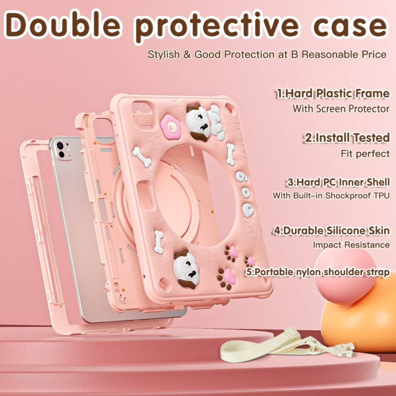 Tutustu ihastuttavaan ja toimivaan koteloon iPad Pro 11 (2025) / 11 (2024) -puhelimelle. Söpön koiramotiivin, integroidun jalustan ja olkahihnan ansiosta siinä yhdistyvät tyyli ja käytännöllisyys. Monikerroksinen suoja ja vahvistetut kulmat takaavat tabletillesi optimaalisen turvallisuuden. Tämä monipuolinen suojakuori sopii sekä lapsille että aikuisille ja kulkee mukanasi kaikkialle.