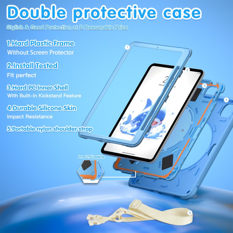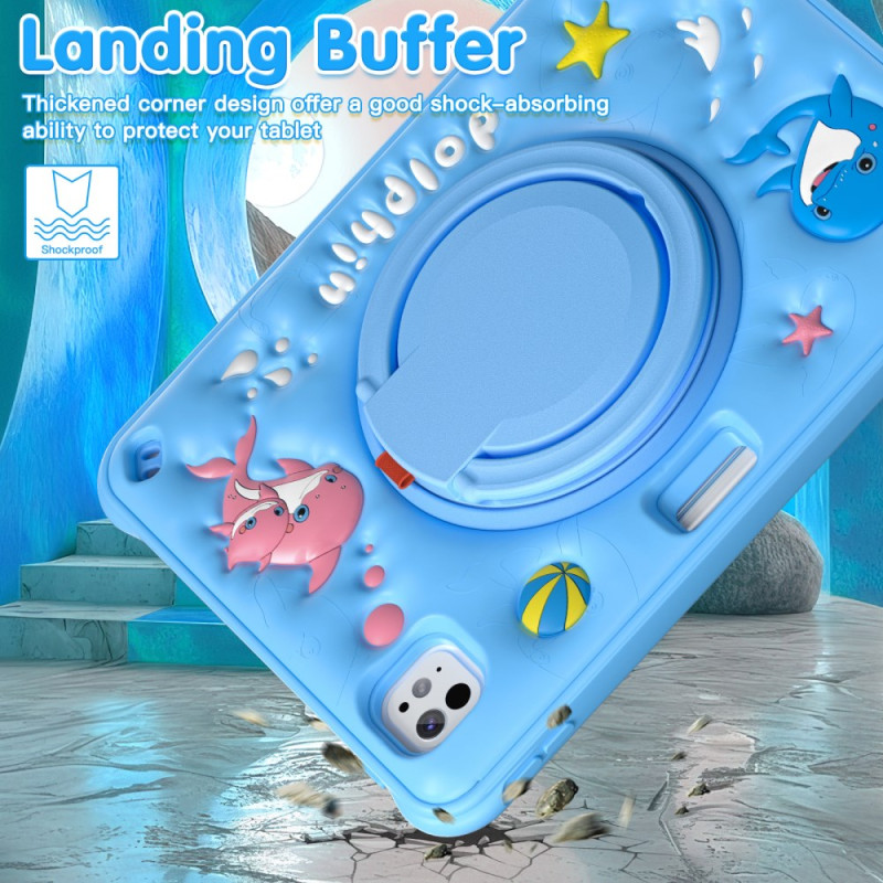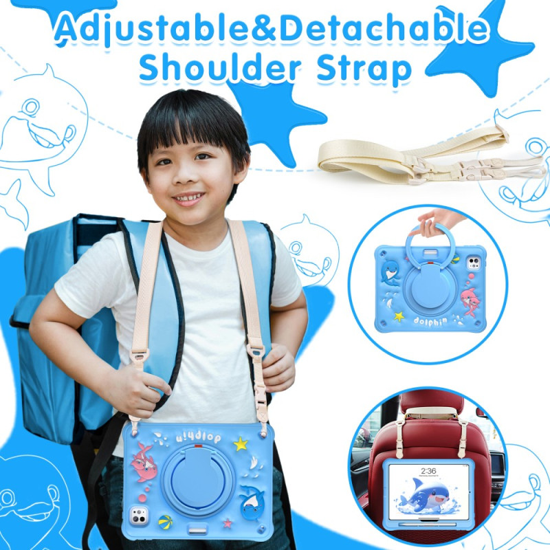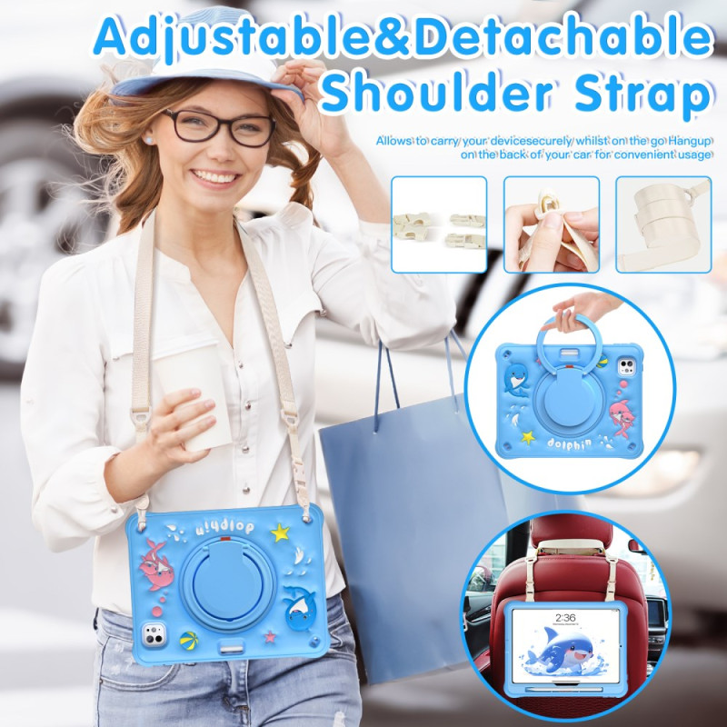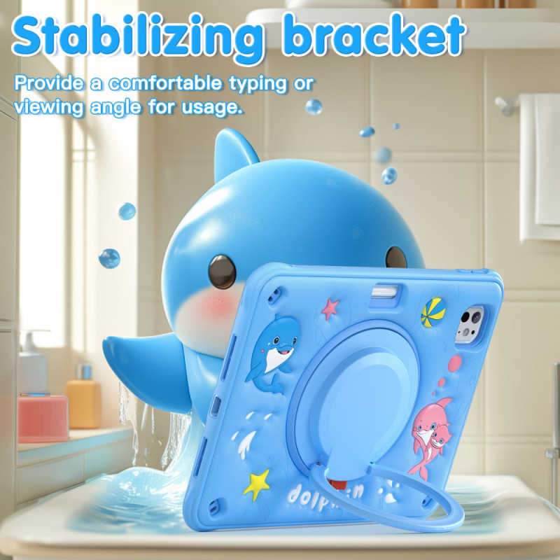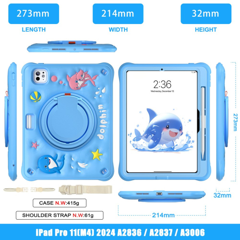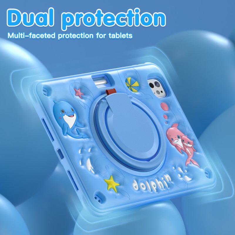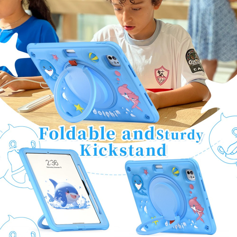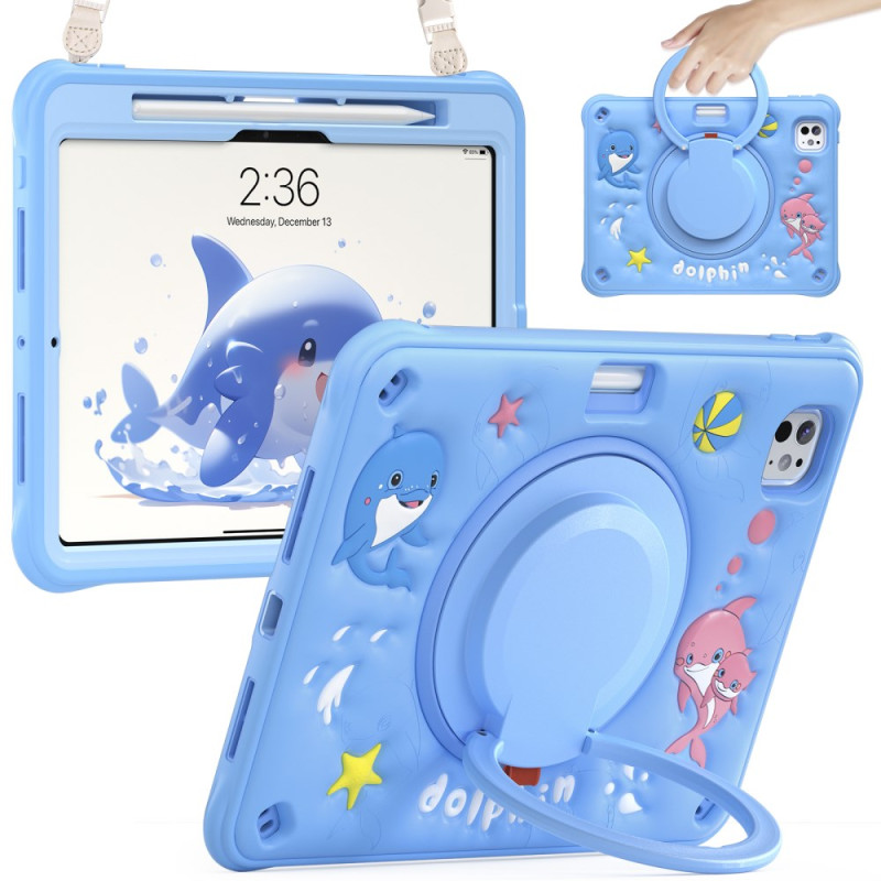 Tutustu ihastuttavaan, monikäyttöiseen koteloon iPad Pro 11 (2025) / 11 (2024) -puhelimelle. Söpön delfiinimotiivin, monikerroksisen suojan, kääntyvän kahvan ja taitettavan potkulaudan ansiosta se tarjoaa maksimaalisen suojan ja monipuolisuuden. Voit myös hyödyntää integroitua kynänpidikettä ja irrotettavaa olkahihnaa maksimaalista siirrettävyyttä varten.