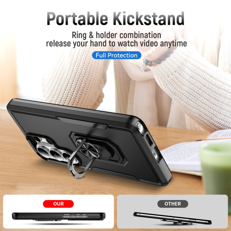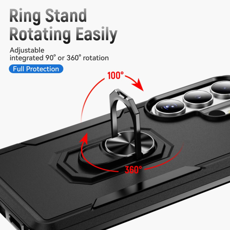Protégez votre Samsung Galaxy S26 Ultra avec cette coque robuste de qualité militaire. Dotée d'un anneau rotatif à 360° servant de support, de bords surélevés pour protéger l'écran et la caméra, et compatible avec les supports magnétiques de voiture. Conception en PC et TPU pour une protection optimale contre les chutes.
