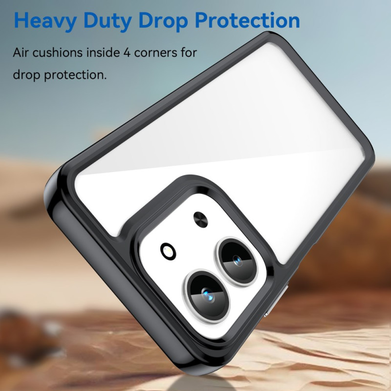 Tutustu kestävään suojakoteloon Xiaomi Redmi 15C 5G / 4G -puhelimelle. Tässä kotelossa, jossa on ilmatyynyt kaikissa neljässä kulmassa optimaalisen putoamissuojan takaamiseksi, yhdistyvät kestävyys ja tyyli. Korotetut reunukset suojaavat näyttöä ja kameraa, ja sen TPU- ja akryylimuotoilu tarjoaa 360 asteen suojan.