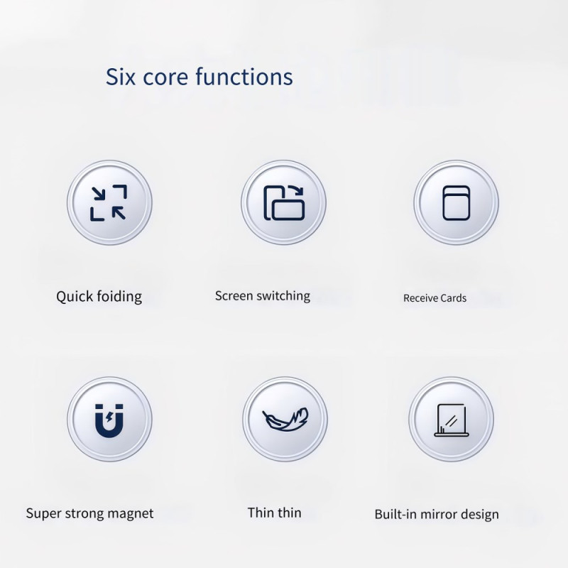 Tutustu tähän kokoontaitettavaan magneettipuhelintelineeseen, jossa yhdistyvät toiminnallisuus ja tyyli. HD-peilillä ja käytännöllisellä korttipidikkeellä varustettu luuri tarjoaa vakaan tuen laitteellesi.