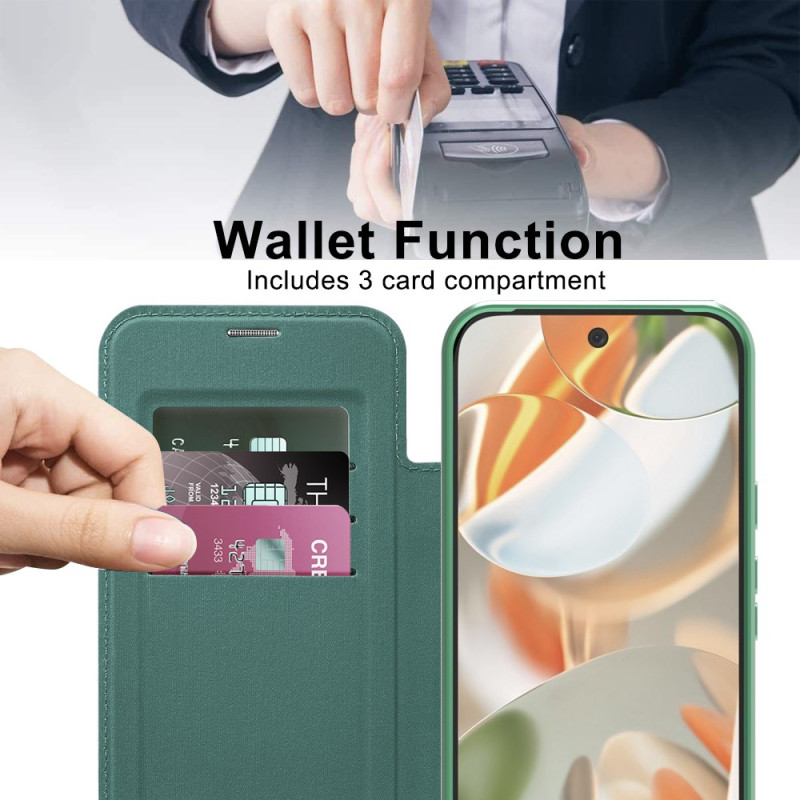Tutustu tyylikkääseen suojakoteloon Google Pixel 10 Pro XL:lle. MagSafe-yhteensopiva suojakotelo on RFID-suljettu, siinä on kestävä nahka- ja TPU-rakenne, läpinäkyvä takaosa, korttipaikat ja vahvistettu kameran suojaus. Tyylin ja toiminnallisuuden yhdistävä suojakuori on täydellinen lisävaruste älypuhelimeesi.