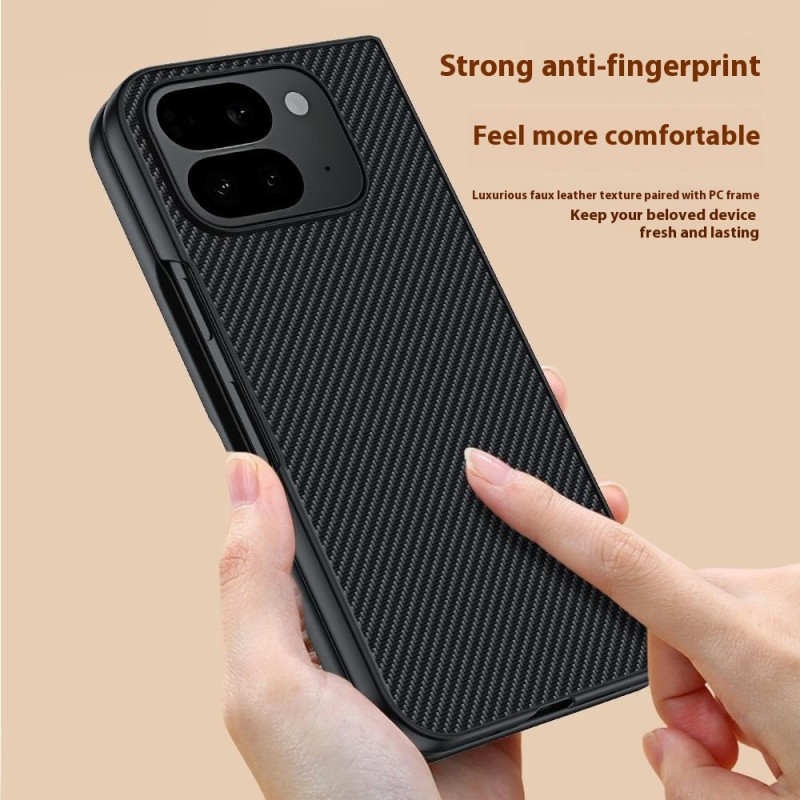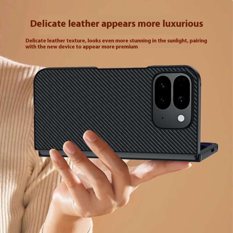 Tässä Google Pixel 10 Pro Fold -puhelimen kotelossa yhdistyvät tyyli ja ohuus, moderni hiilikuituinen rakenne ja ainutlaatuinen muotoilu urheilullisen ja tyylikkään ulkonäön luomiseksi. Sen PU-nahan ja PC-kovakuoren hybridirakenne suojaa älypuhelinta tehokkaasti putoamisilta ja naarmuilta säilyttäen samalla kokoontaitettaville laitteille sopivan erittäin ohuen profiilin. Korotetut reunukset näytön ja valokuvamoduulin ympärillä antavat lisäsuojaa naarmuilta, ja sen wrap-around-rakenne ja iskuja vaimentavat kulmat tarjoavat luotettavan suojan jokapäiväiseen käyttöön estämättä avaamista ja sulkemista.
