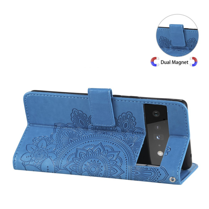 Une magnifique housse pour Google Pixel 6 Pro au mandala design de fleurs qui fait aussi portefeuille et support.