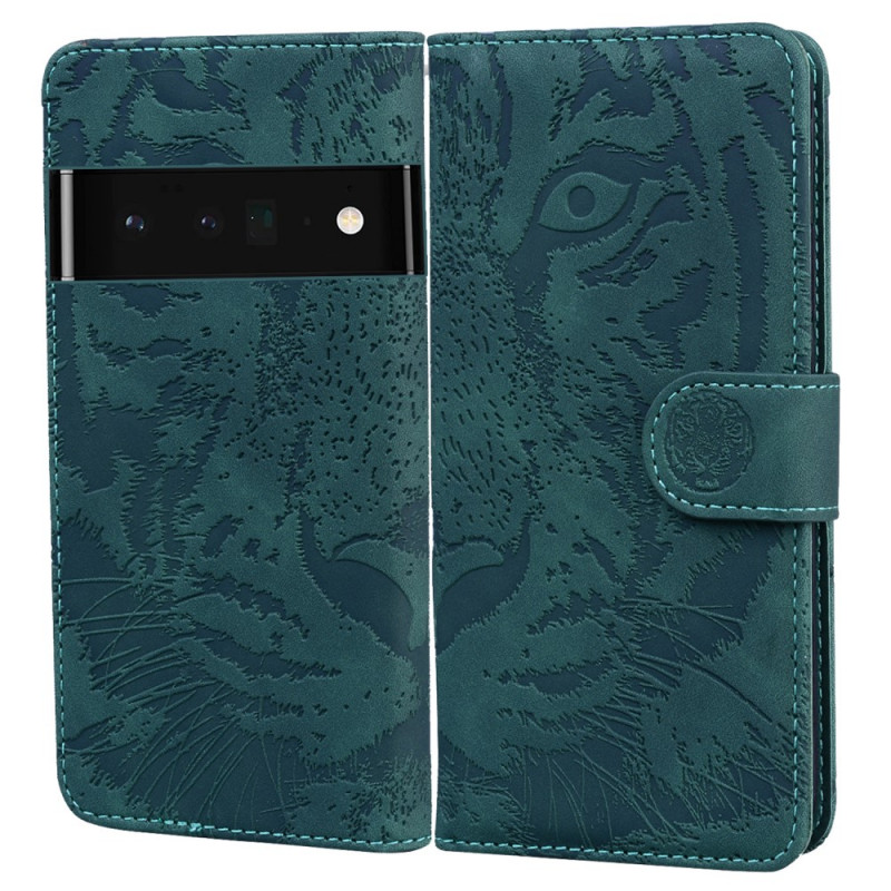 Protégez votre Google Pixel 6 Pro contre les intempéries avec cette housse en simili cuir Empreinte Face de Tigre.