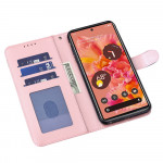 tu keinonahasta, ja se kiinnittää puhelimen täysin ja toimii lompakkona, jossa on kortti- ja muistiinpanoaukot.